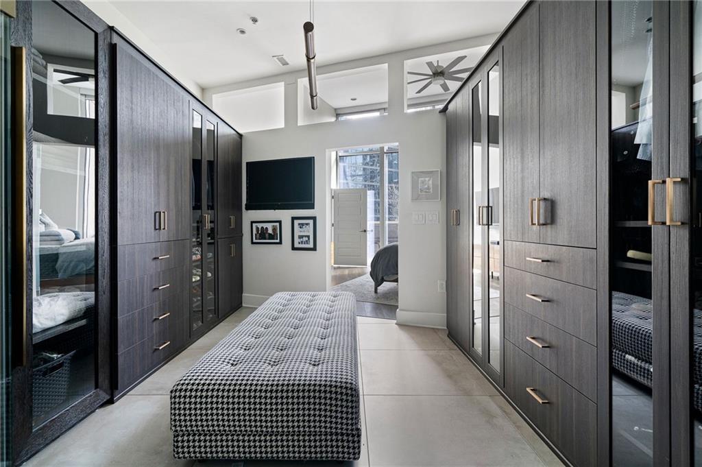 The primary suite serves as a true retreat, featuring impressive height, custom closet systems, and a spa-inspired bath equipped with dual vanities and a state-of-the-art digital master steam shower. The secondary bedroom offers versatility, making it ideal for guests or as a home office, with convenient access to a beautifully finished second bath.