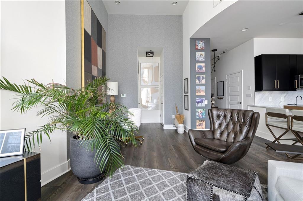 Experience the height of modern sophistication in this unique two-bedroom, two-bath residence at 1010 Midtown. This exceptional home features rare 14-foot ceilings and a distinct layout that ensures there are no neighbors directly above or below, creating a serene "home in the sky." Expansive glass walls flood the space with natural light, creating a bright, airy atmosphere.