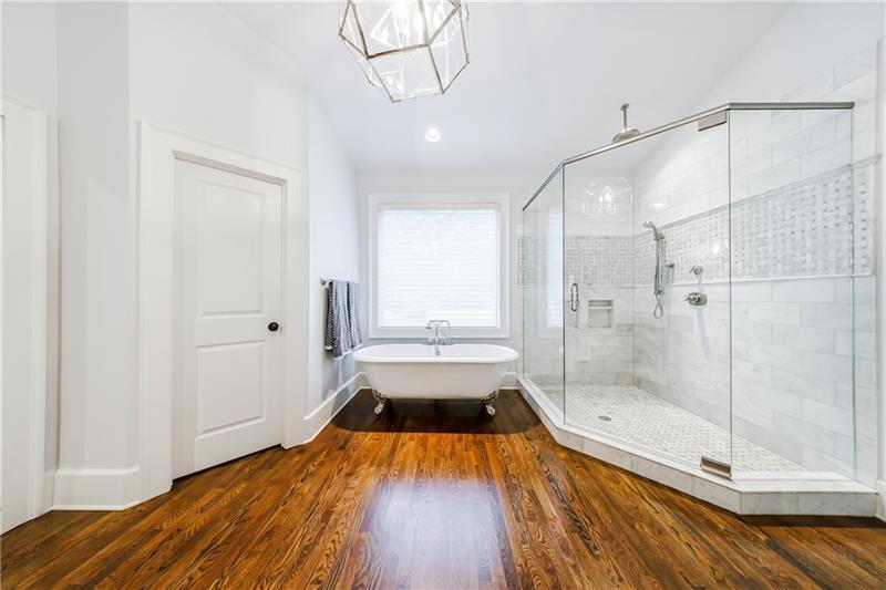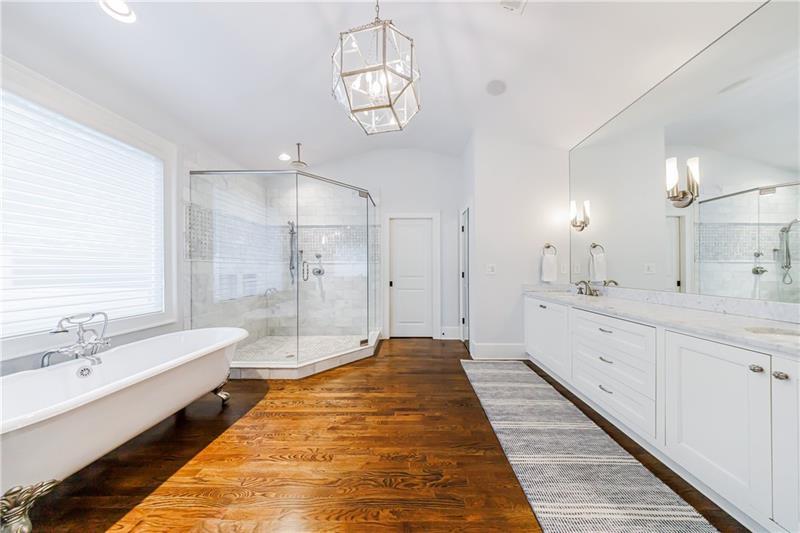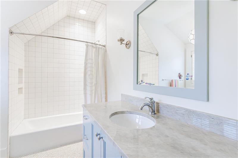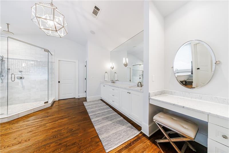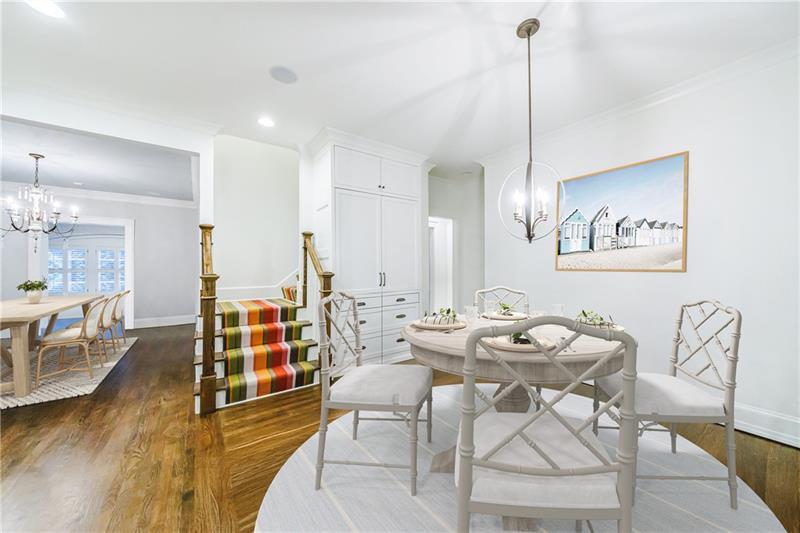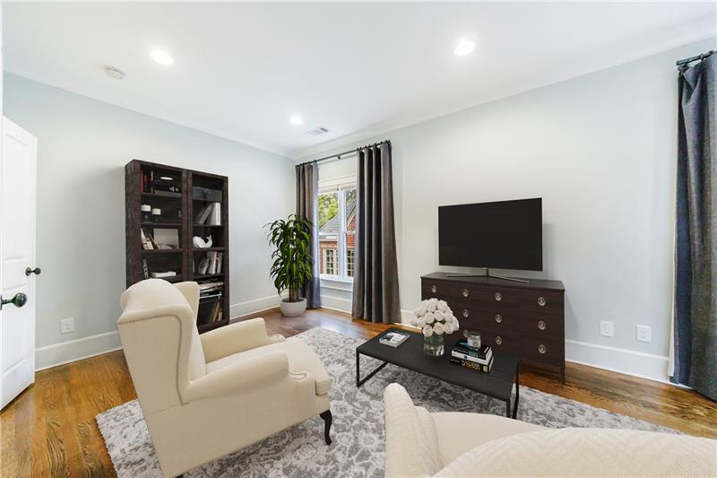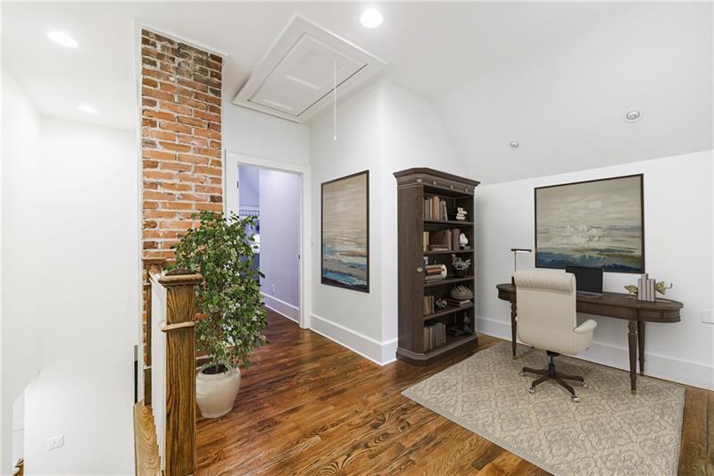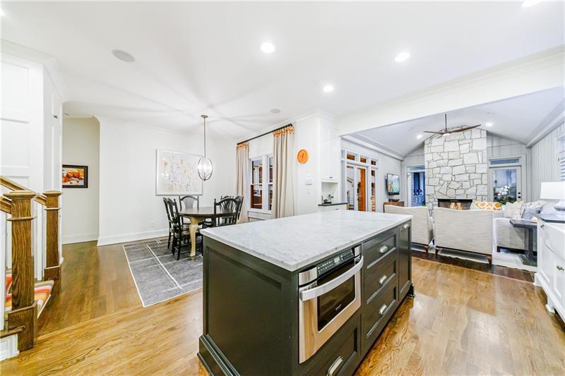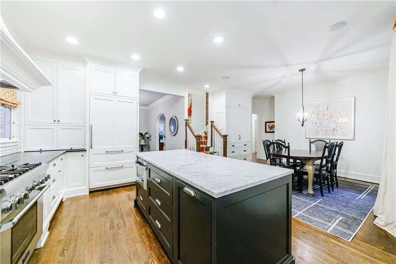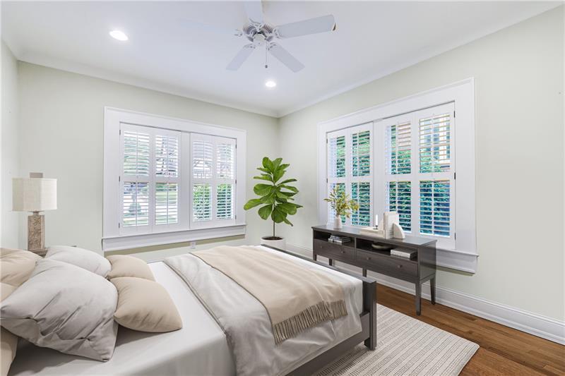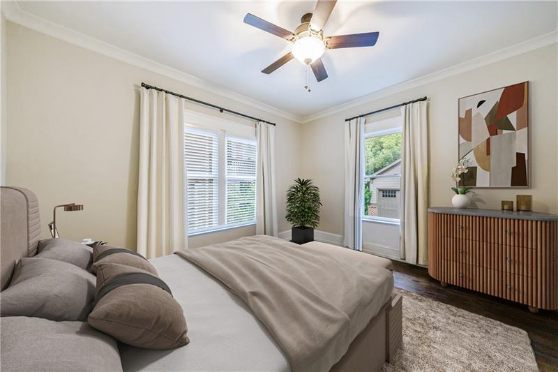 Discover an extraordinary opportunity on one of Morningside's most sought-after streets, nestled in the heart of this vibrant neighborhood! This stunning Tudor-style home, masterfully renovated by John Willis Homes, blends modern elegance with timeless character. Enter through the arched front door into a welcoming living room with a brick fireplace, gleaming hardwood floors, and soaring ceilings, flowing seamlessly into a sophisticated dining room via an elegant arched doorway. Ideal for hosting, the dining room connects to a sunlit sunroom and a pristine white kitchen featuring stone countertops, a farm-style sink, a stainless steel Thermador gas range, a SubZero Refrigerator, and a spacious island. The open-concept kitchen and breakfast area lead to a cozy family room with a vaulted ceiling, floor-to-ceiling stone fireplace, and large windows and doors opening to a generous exterior deck. The adjacent sunroom, with its own fireplace and treetop views, offers a tranquil escape. The expansive primary suite boasts a spa-like bathroom with an oversized shower, clawfoot tub, dual-sink marble vanity, and a custom-designed closet. Two additional main-level bedrooms with beautifully appointed bathrooms provide ample space, while an upstairs loft, bedroom, and full bath create a flexible space perfect for an office, playroom, or gym. Outdoors, enjoy dining on the large deck, which leads to a fenced backyard with a grassy courtyard ideal for recreation. A detached two-car garage and driveway parking add convenience, just seconds from charming shops, restaurants, and parks along tree-lined sidewalks. Modern upgrades include a level 2 car charger, Tesla Wall Connector, and a whole-house generator for added peace of mind.
