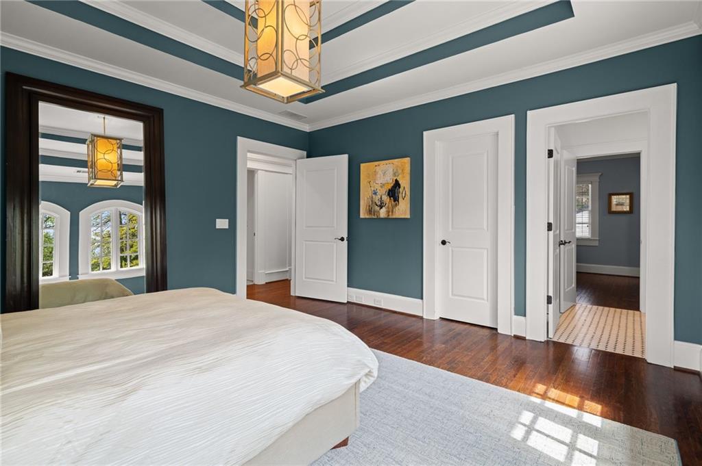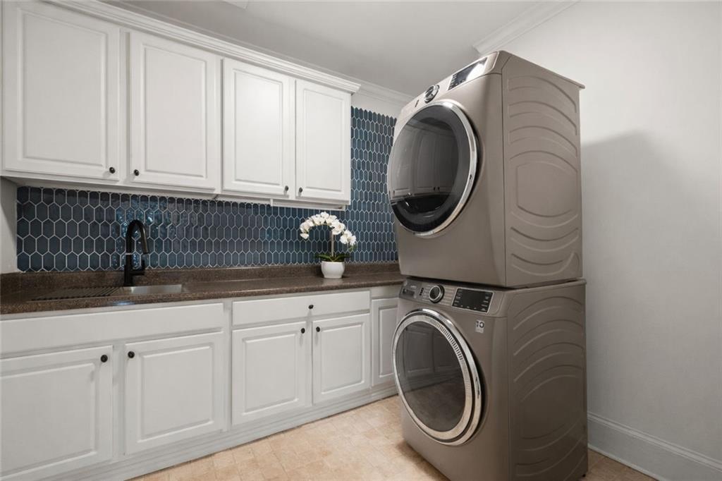 Upstairs, the expansive primary suite is a true retreat, complete with tray ceilings, a fireplace, and a spa-inspired bath featuring a freestanding slipper tub, frameless glass shower, dual vanities with a makeup area, and an exceptional custom walk-in closet. Secondary bedrooms are generously sized with beautifully appointed baths and ample storage. A thoughtfully designed laundry room with cabinetry, counter space, and a sink adds everyday convenience.