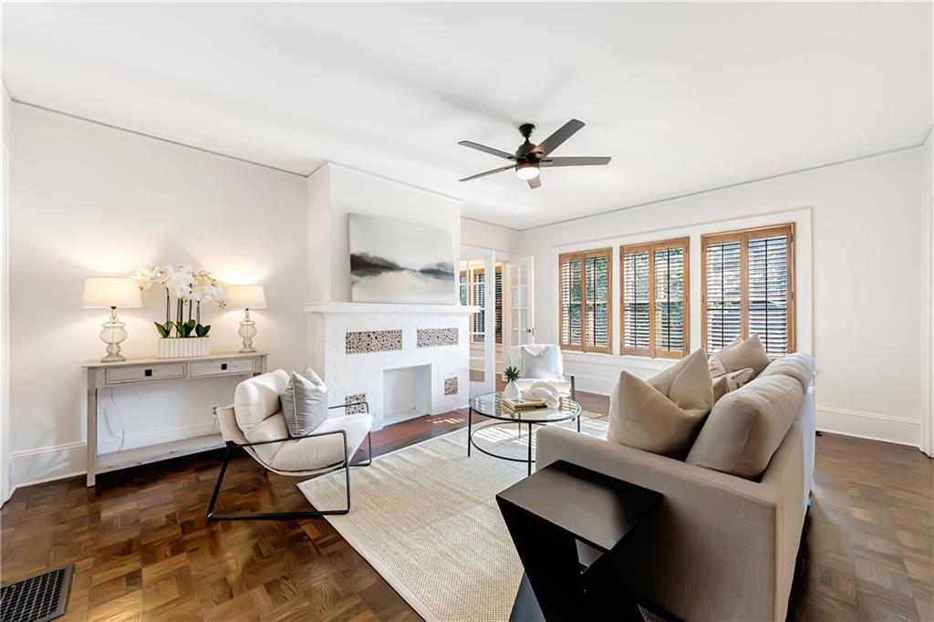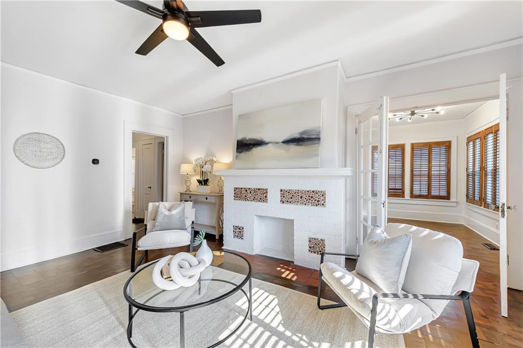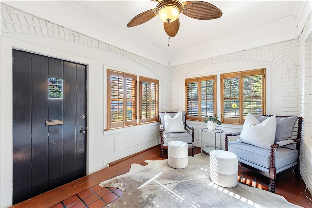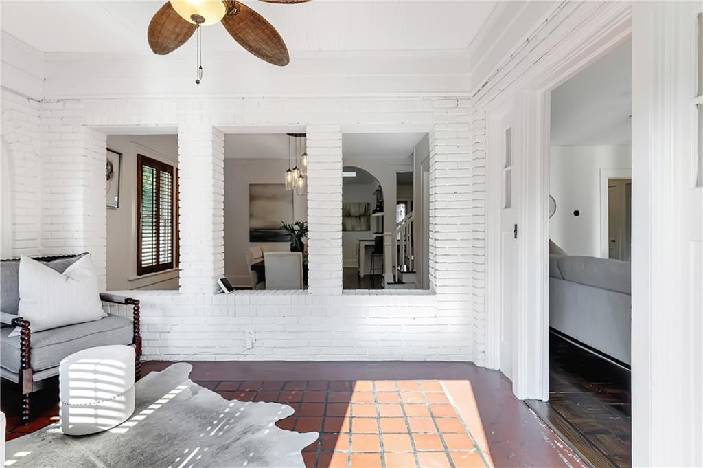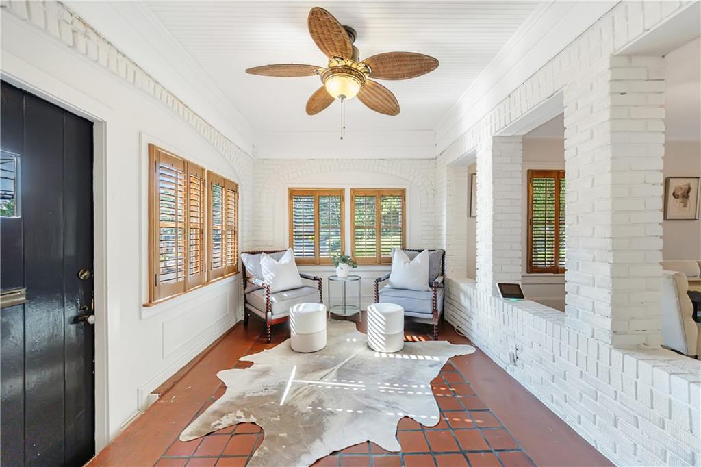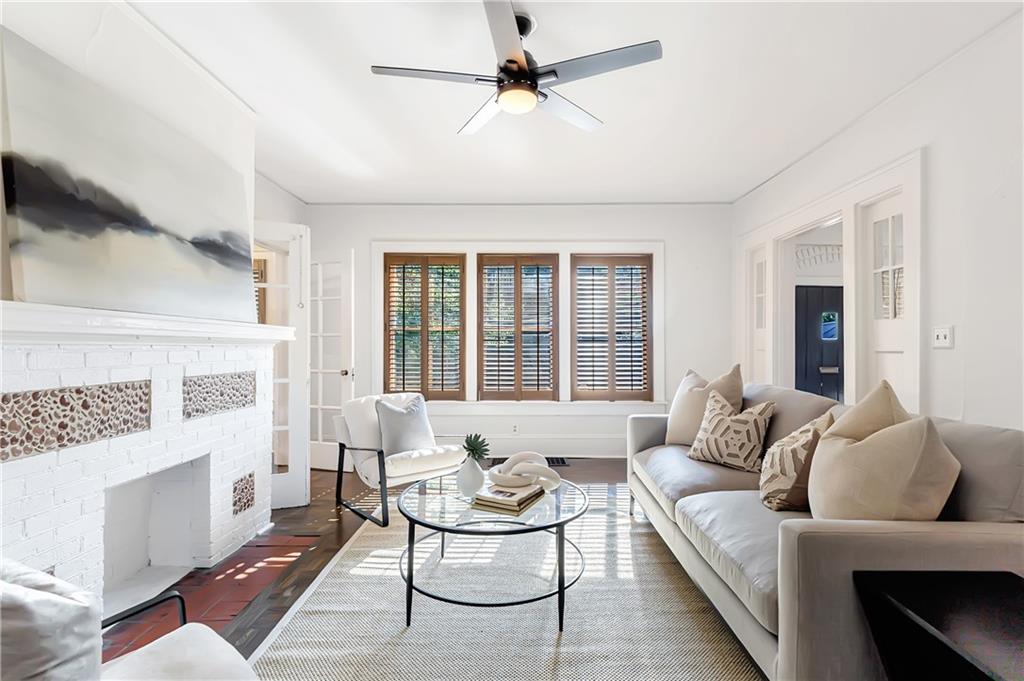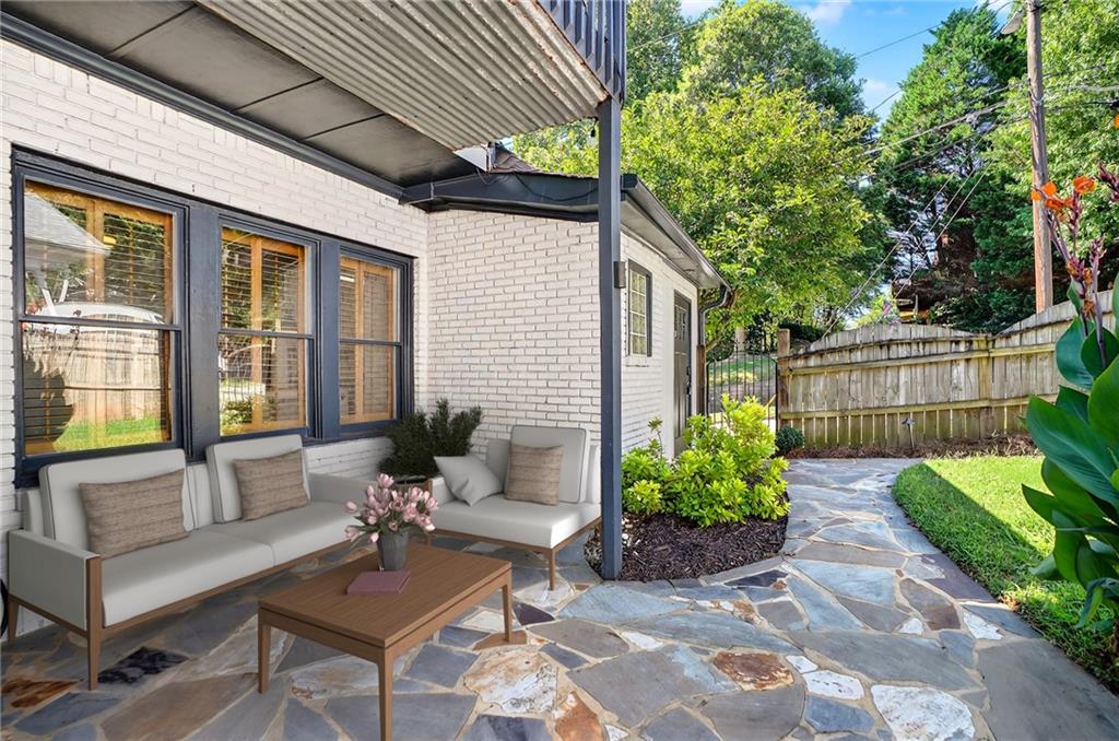 Welcome to a rare gem located at the energy of Morningside Village, where local favorites are right across the street, and ideally located just moments from the highly coveted Morningside Elementary School. This classic brick bungalow effortlessly blends early 20th-century charm with smart, stylish updates designed for modern living. A welcoming foyer greets you with original terracotta tile and an exposed brick wall. Gorgeous refinished hardwoods flow throughout, with intricate parquet detailing adding a sense of craftsmanship to the main level. The heart of the home centers around a generous kitchen with a large center island with stone counters, ideal for casual mornings or gathering with friends. A cozy den offers the perfect nook to unwind, while French doors off the living room lead to a cheerful sunroom, complete with a barn door that cleverly conceals the laundry. Two spacious bedrooms and two full baths on the main level provide comfort and flexibility for guests or daily living. Upstairs, the newly redesigned primary suite offers a true retreat. Enjoy your morning coffee on the private balcony, soak in your bright, airy bathtub, and take advantage of three custom closets. An adjacent loft adds bonus space perfect for a home office, reading lounge, or play area. The second level was thoughtfully reimagined as part of over $150,000 in recent improvements. This renovation also added a fourth bedroom, giving the home even more versatility. Two newer HVAC systems (installed in 2021 and 2024), gutter guards, a new natural gas line, and updated exterior lighting reflect a strong commitment to long-term comfort and efficiency. The fully fenced and low-maintenance backyard features a beautiful stone patio ideal for outdoor dining or evening relaxation. A one-car garage, accessed from the side street, adds rare convenience, with plentiful parking always available for visitors. This is more than just a home; it's an unbeatable lifestyle in one of Atlanta's most beloved and walkable neighborhoods, where historic charm meets everyday ease.
