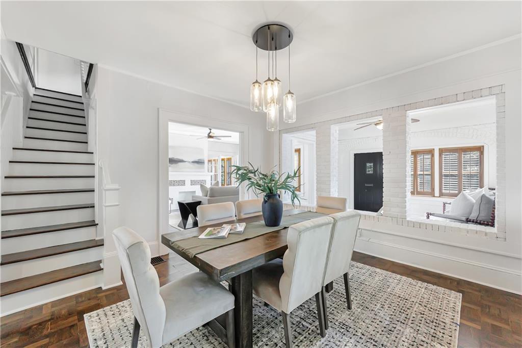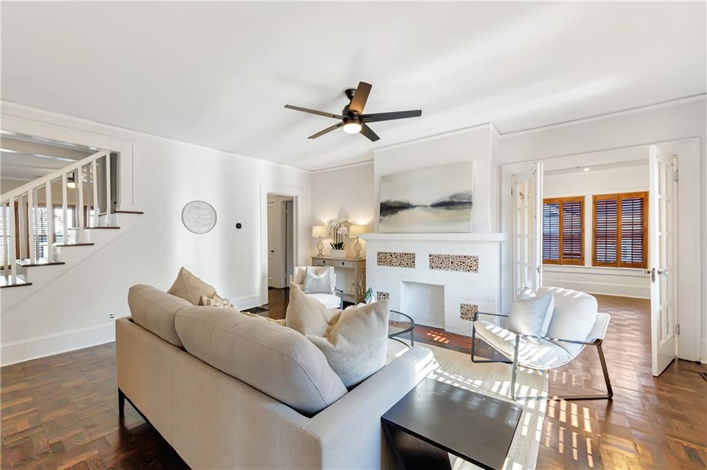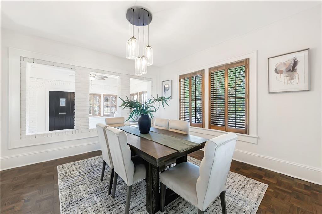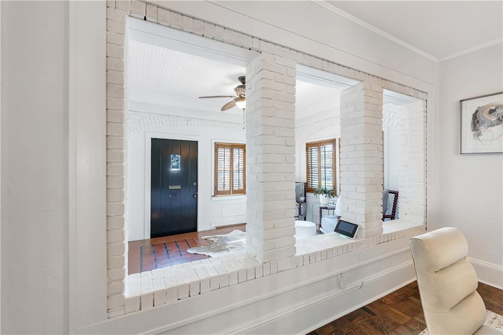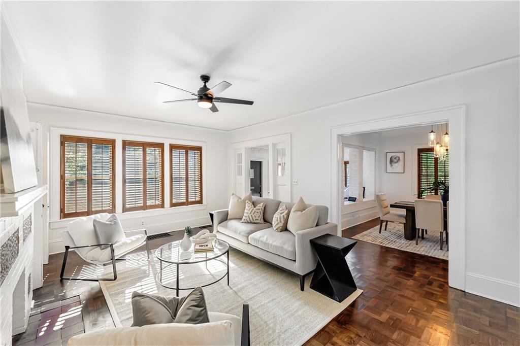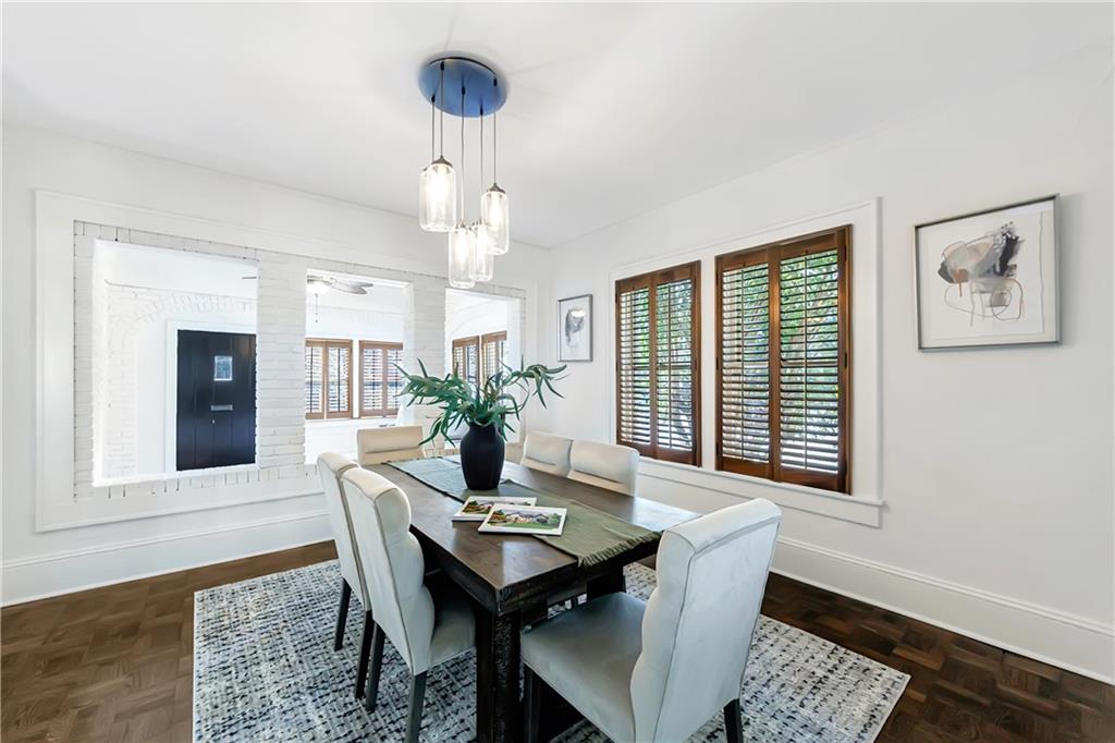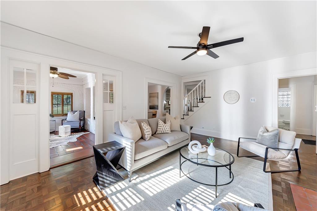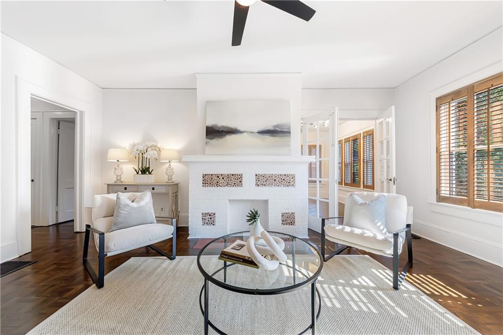 Welcome to a rare gem located at the energy of Morningside Village, where local favorites are right across the street, and ideally located just moments from the highly coveted Morningside Elementary School. This classic brick bungalow effortlessly blends early 20th-century charm with smart, stylish updates designed for modern living. A welcoming foyer greets you with original terracotta tile and an exposed brick wall. Gorgeous refinished hardwoods flow throughout, with intricate parquet detailing adding a sense of craftsmanship to the main level. The heart of the home centers around a generous kitchen with a large center island with stone counters, ideal for casual mornings or gathering with friends. A cozy den offers the perfect nook to unwind, while French doors off the living room lead to a cheerful sunroom, complete with a barn door that cleverly conceals the laundry. Two spacious bedrooms and two full baths on the main level provide comfort and flexibility for guests or daily living. Upstairs, the newly redesigned primary suite offers a true retreat. Enjoy your morning coffee on the private balcony, soak in your bright, airy bathtub, and take advantage of three custom closets. An adjacent loft adds bonus space perfect for a home office, reading lounge, or play area. The second level was thoughtfully reimagined as part of over $150,000 in recent improvements. This renovation also added a fourth bedroom, giving the home even more versatility. Two newer HVAC systems (installed in 2021 and 2024), gutter guards, a new natural gas line, and updated exterior lighting reflect a strong commitment to long-term comfort and efficiency. The fully fenced and low-maintenance backyard features a beautiful stone patio ideal for outdoor dining or evening relaxation. A one-car garage, accessed from the side street, adds rare convenience, with plentiful parking always available for visitors. This is more than just a home; it's an unbeatable lifestyle in one of Atlanta's most beloved and walkable neighborhoods, where historic charm meets everyday ease.