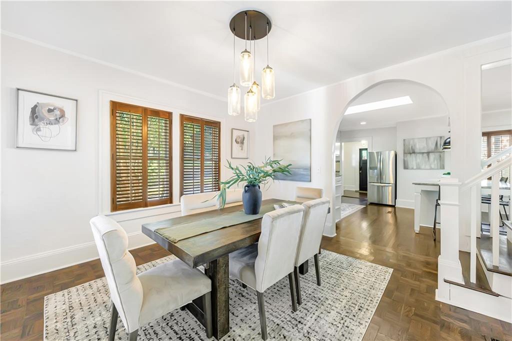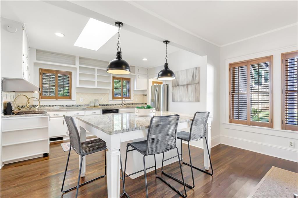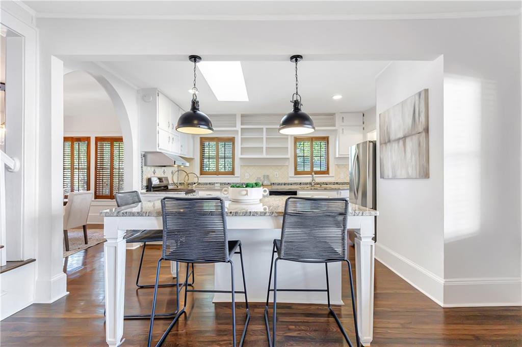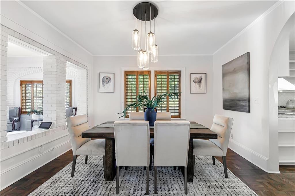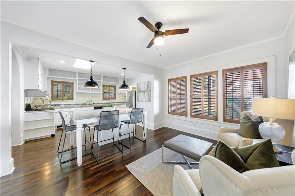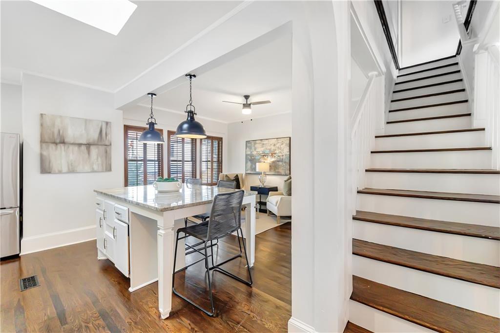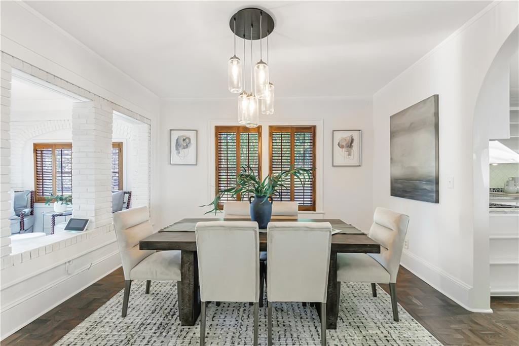 Welcome to a rare gem located at the energy of Morningside Village, where local favorites are right across the street, and ideally located just moments from the highly coveted Morningside Elementary School. This classic brick bungalow effortlessly blends early 20th-century charm with smart, stylish updates designed for modern living. A welcoming foyer greets you with original terracotta tile and an exposed brick wall. Gorgeous refinished hardwoods flow throughout, with intricate parquet detailing adding a sense of craftsmanship to the main level. The heart of the home centers around a generous kitchen with a large center island with stone counters, ideal for casual mornings or gathering with friends. A cozy den offers the perfect nook to unwind, while French doors off the living room lead to a cheerful sunroom, complete with a barn door that cleverly conceals the laundry. Two spacious bedrooms and two full baths on the main level provide comfort and flexibility for guests or daily living. Upstairs, the newly redesigned primary suite offers a true retreat. Enjoy your morning coffee on the private balcony, soak in your bright, airy bathtub, and take advantage of three custom closets. An adjacent loft adds bonus space perfect for a home office, reading lounge, or play area. The second level was thoughtfully reimagined as part of over $150,000 in recent improvements. This renovation also added a fourth bedroom, giving the home even more versatility. Two newer HVAC systems (installed in 2021 and 2024), gutter guards, a new natural gas line, and updated exterior lighting reflect a strong commitment to long-term comfort and efficiency. The fully fenced and low-maintenance backyard features a beautiful stone patio ideal for outdoor dining or evening relaxation. A one-car garage, accessed from the side street, adds rare convenience, with plentiful parking always available for visitors. This is more than just a home; it's an unbeatable lifestyle in one of Atlanta's most beloved and walkable neighborhoods, where historic charm meets everyday ease.