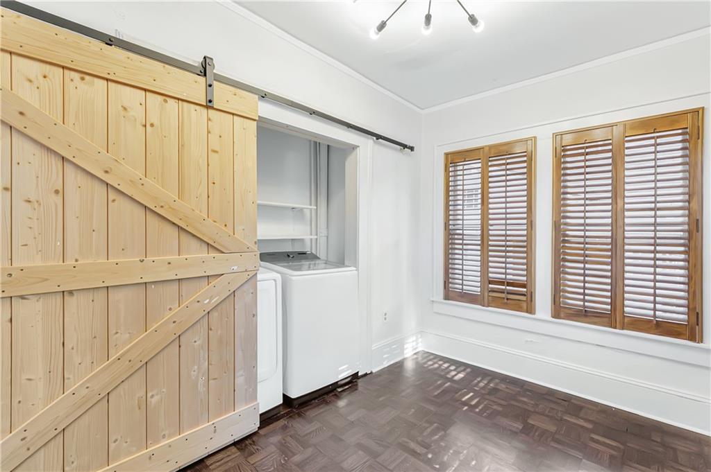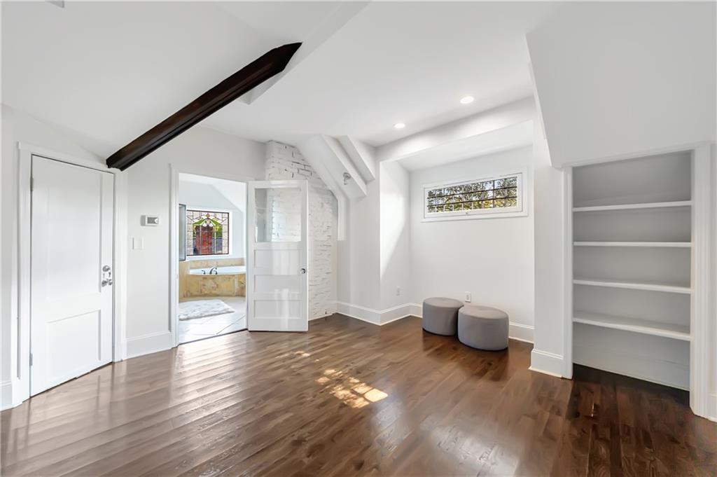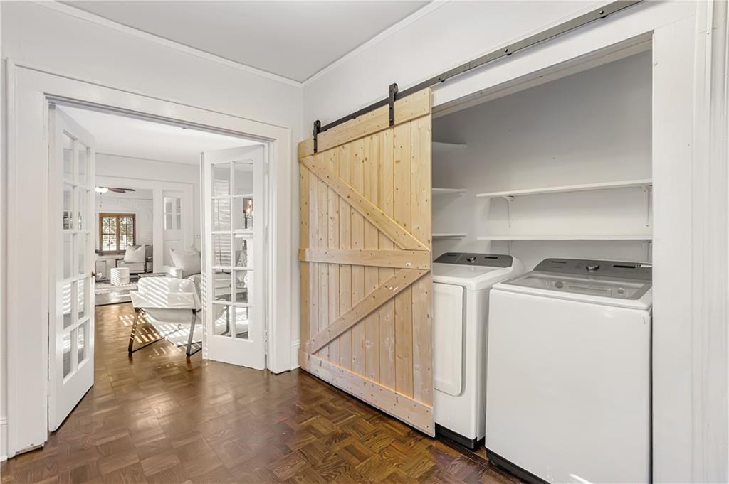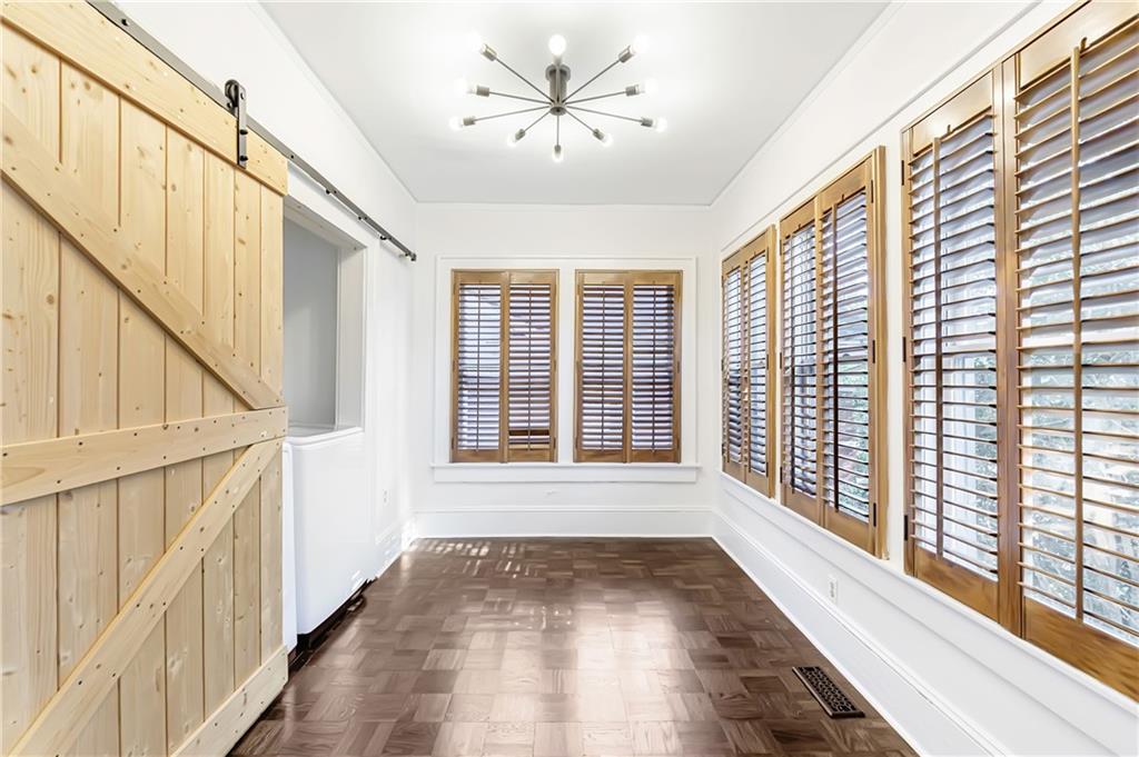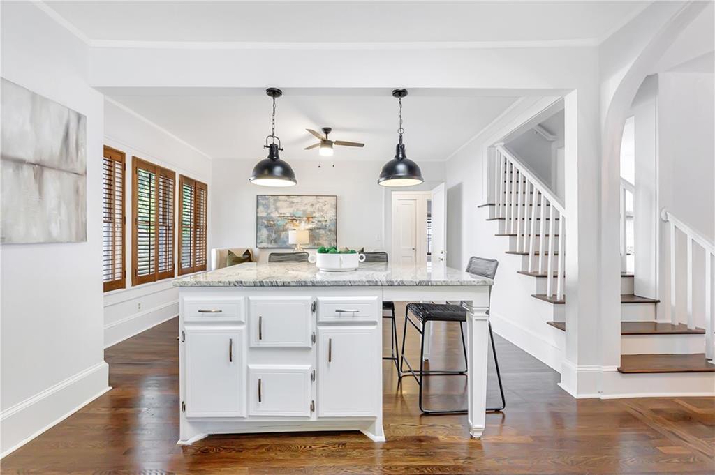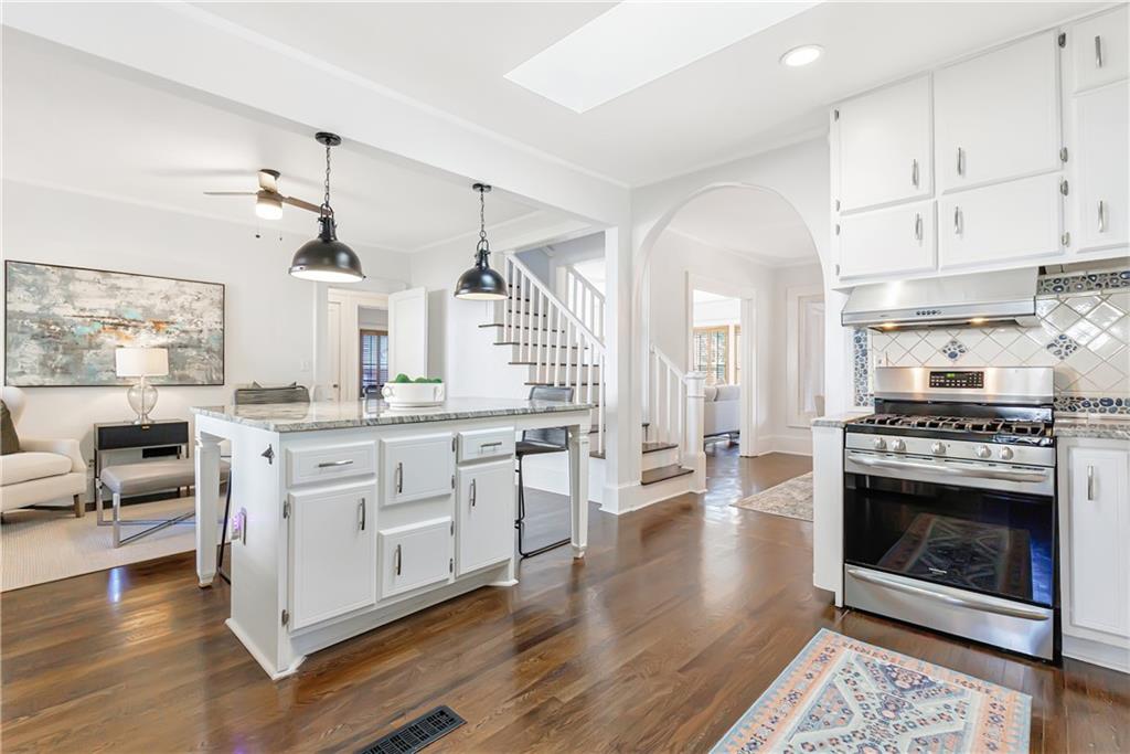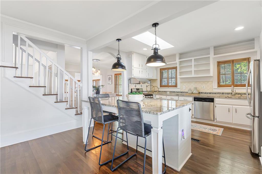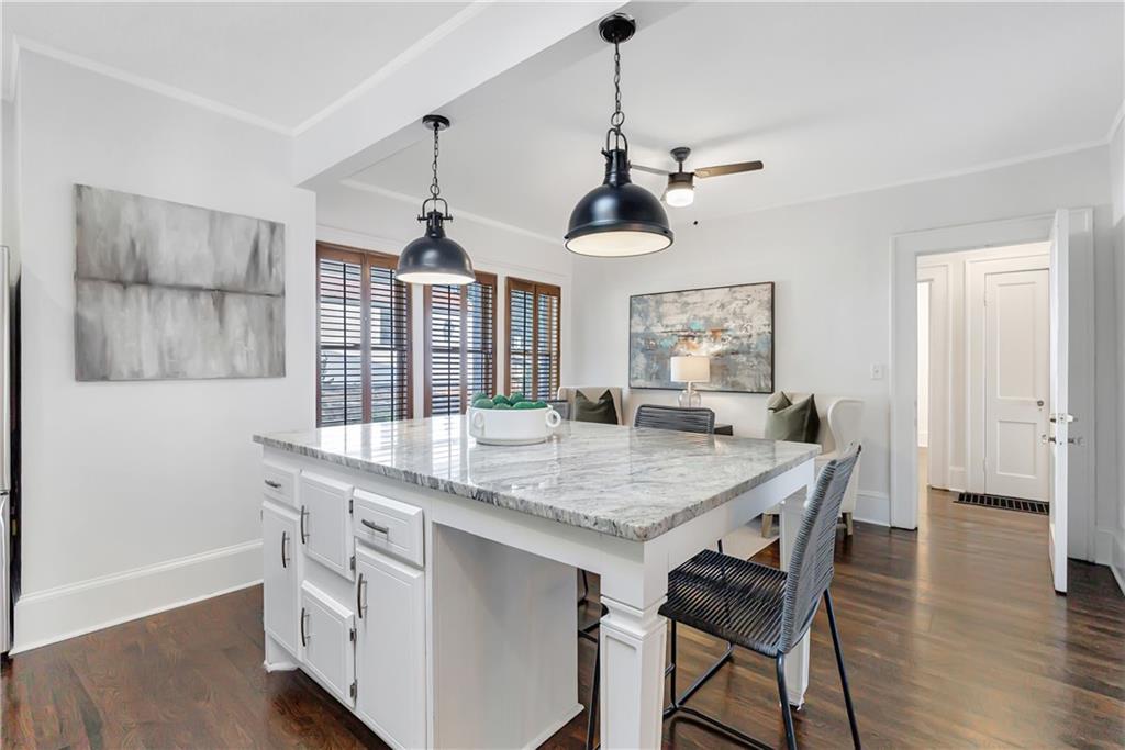 Welcome to a rare gem located at the energy of Morningside Village, where local favorites are right across the street, and ideally located just moments from the highly coveted Morningside Elementary School. This classic brick bungalow effortlessly blends early 20th-century charm with smart, stylish updates designed for modern living. A welcoming foyer greets you with original terracotta tile and an exposed brick wall. Gorgeous refinished hardwoods flow throughout, with intricate parquet detailing adding a sense of craftsmanship to the main level. The heart of the home centers around a generous kitchen with a large center island with stone counters, ideal for casual mornings or gathering with friends. A cozy den offers the perfect nook to unwind, while French doors off the living room lead to a cheerful sunroom, complete with a barn door that cleverly conceals the laundry. Two spacious bedrooms and two full baths on the main level provide comfort and flexibility for guests or daily living. Upstairs, the newly redesigned primary suite offers a true retreat. Enjoy your morning coffee on the private balcony, soak in your bright, airy bathtub, and take advantage of three custom closets. An adjacent loft adds bonus space perfect for a home office, reading lounge, or play area. The second level was thoughtfully reimagined as part of over $150,000 in recent improvements. This renovation also added a fourth bedroom, giving the home even more versatility. Two newer HVAC systems (installed in 2021 and 2024), gutter guards, a new natural gas line, and updated exterior lighting reflect a strong commitment to long-term comfort and efficiency. The fully fenced and low-maintenance backyard features a beautiful stone patio ideal for outdoor dining or evening relaxation. A one-car garage, accessed from the side street, adds rare convenience, with plentiful parking always available for visitors. This is more than just a home; it's an unbeatable lifestyle in one of Atlanta's most beloved and walkable neighborhoods, where historic charm meets everyday ease.