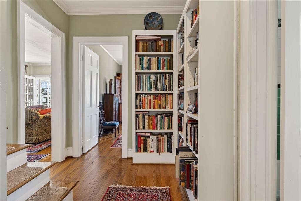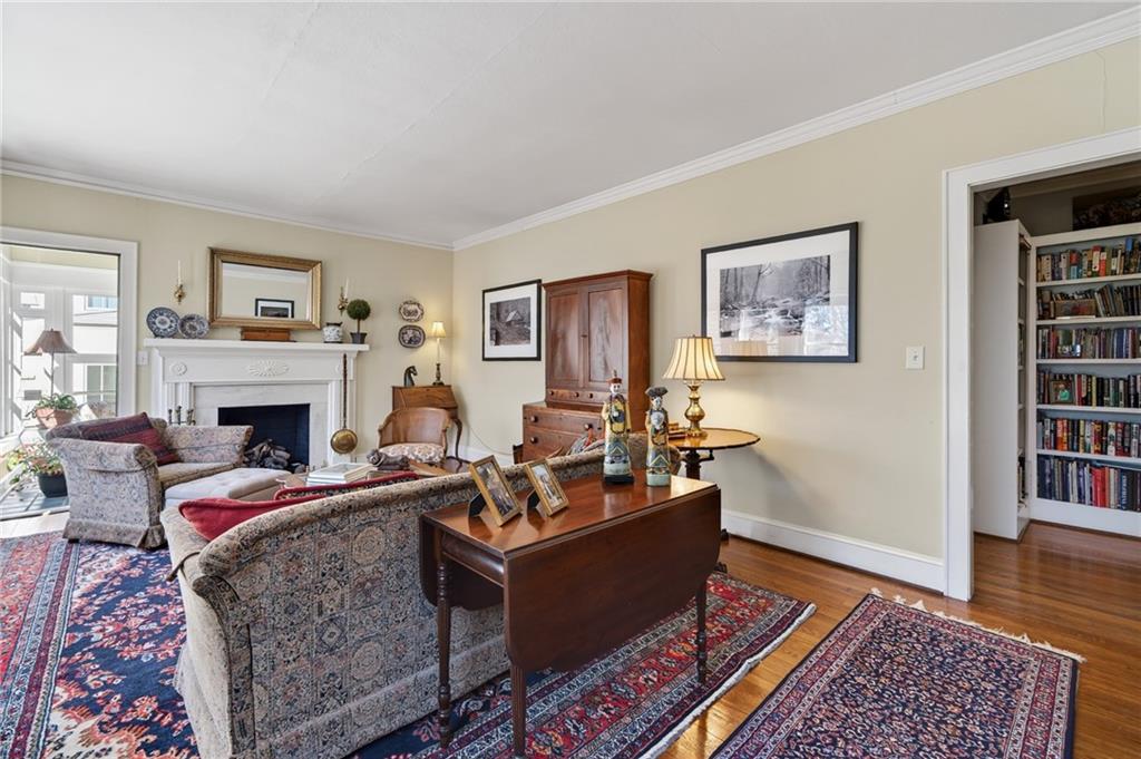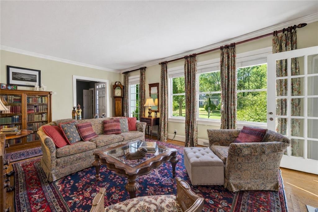 A welcoming front lawn, mature trees, and manicured gardens with a custom picket fence set the tone for this storybook residence, complete with a durable slate roof and detached 2-car garage. Inside, you'll find warm hardwood floors, elegant crown molding, and gracious living spaces filled with natural light.