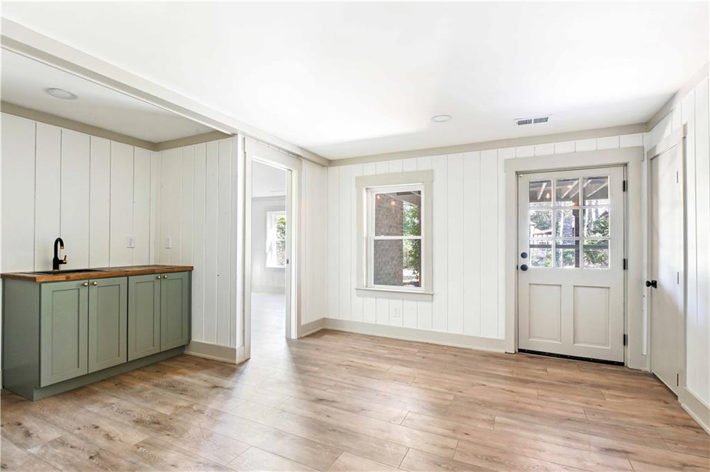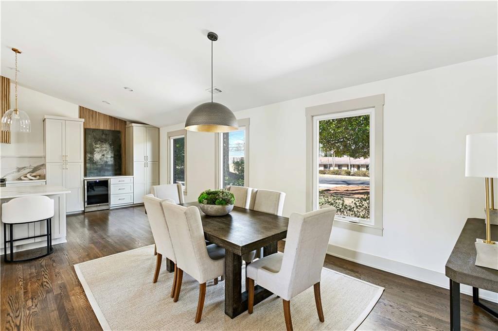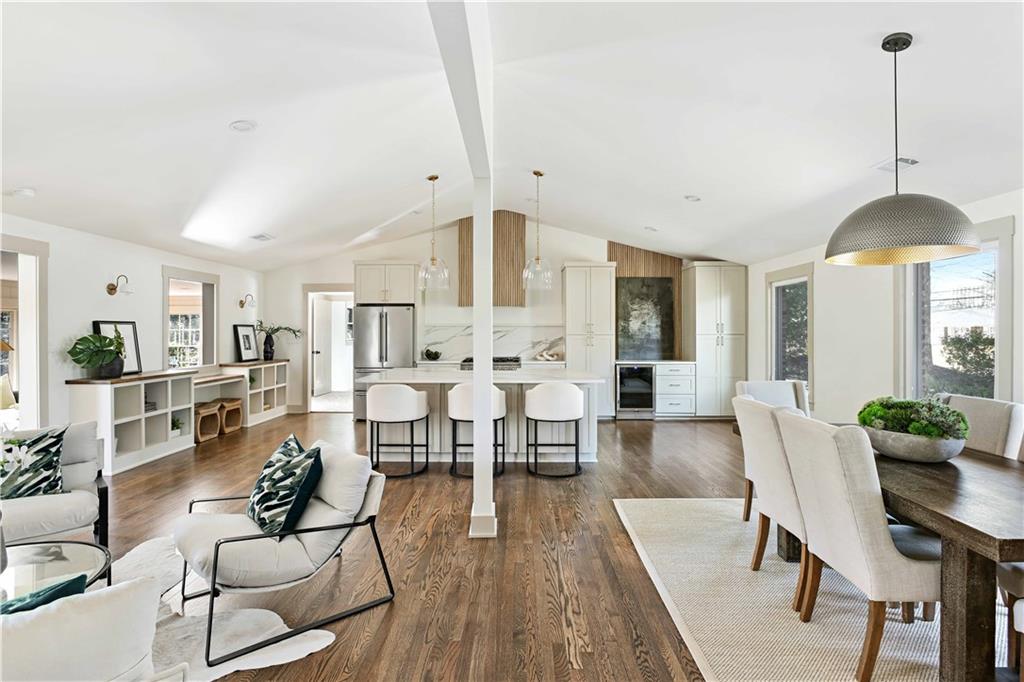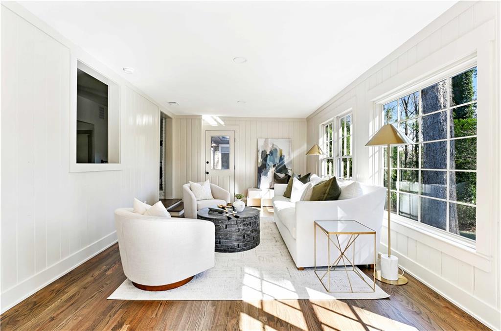 Just beyond, the sunroom-style family room is wrapped in windows on three sides, flooding the space with natural light and offering tranquil views of the backyard. With direct outdoor access, it's an ideal spot for morning coffee, casual evenings, or hosting friends as the day winds down.