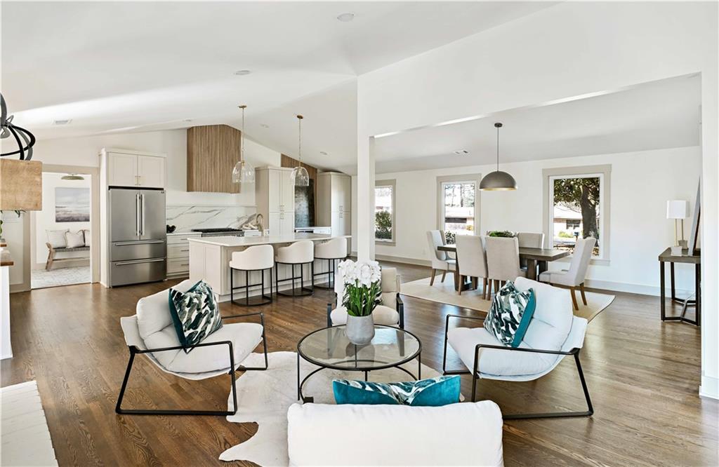 At the center of the home, a light-filled fireside living room creates a natural gathering place, seamlessly connecting each space and inviting conversation, relaxation, and entertaining. Warm hardwood floors, soft neutral tones, and thoughtful architectural details flow throughout, creating a calm, cohesive backdrop that feels both modern and timeless.