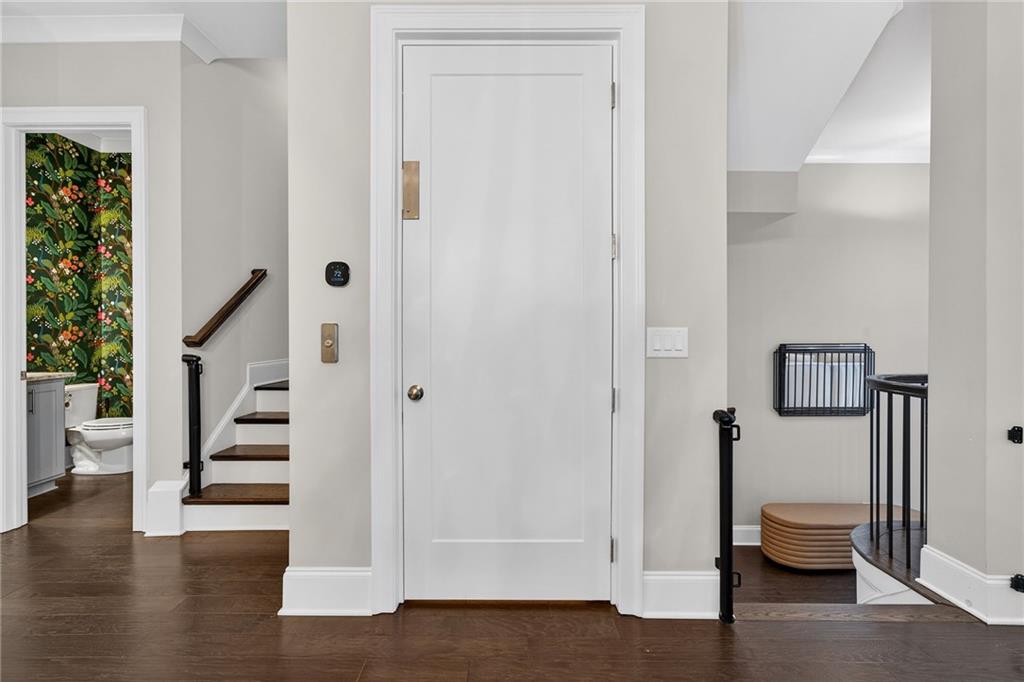 The fully finished daylight terrace level further enhances the home's versatility, complete with a mudroom, full bath, private office, gym space, and abundant storage. Plantation shutters, custom built-ins, an elevator servicing multiple levels, and a two-car garage add both luxury and convenience.