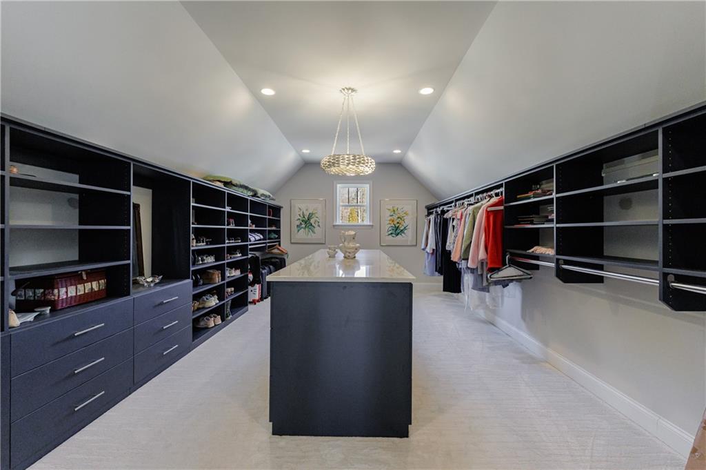 Upstairs, the fully renovated primary suite serves as a serene retreat, complete with a beautifully updated, spa-inspired bathroom featuring enhanced storage and thoughtful design details. The oversized primary closet features a large island with quartz countertop, extra shelving for all your wardrobe needs, and a small built-in safe for added security and convenience. Three additional bedrooms complete the upper level, including one with a private en-suite bath and two connected by a Jack-and-Jill bathroom, all of which have been fully remodeled. A conveniently located laundry room completes the second floor. Custom closet systems throughout the home further enhance organization and functionality.