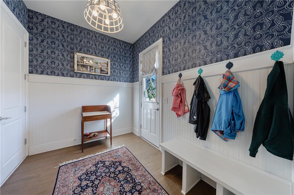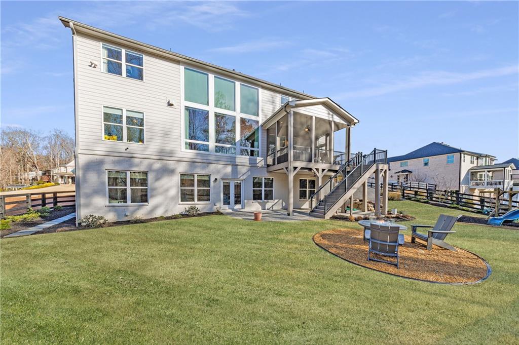 The showpiece kitchen has been thoughtfully reimagined with added windows and a reconfigured layout that places the sink beneath sunlit views, a large center island, upgraded lighting, and a professional-grade appliance package including a Thermador range with double ovens and griddle, Thermador refrigerator, and Bosch dishwasher. Every element was selected to balance elevated style with everyday practicality. Just off the main living area, a screened porch with TimberTech flooring provides a comfortable extension of the home for year-round enjoyment. You'll find a convenient mud room and pantry just off the kitchen, perfect for staying organized. A main-level bedroom and full bath offer flexibility for guests, a playroom, or multi-generational living.