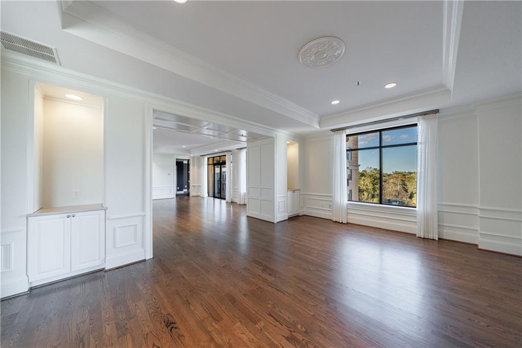 Step into a world of refined elegance and timeless sophistication at The Borghese, where luxury living reaches new heights in this extraordinary residence boasting more than 4,000 square feet of single-level perfection. This is not only one of the largest single-level condominiums in the city, but also one of the rarest opportunities, a home of grand scale and exclusivity in a building with only fifty-five residences, no rentals permitted, and many owners enjoying their homes as seasonal retreats. From the moment you enter, light pours through floor-to-ceiling windows, illuminating soaring ceilings, limestone and hardwood floors, and exquisite moldings that frame every room with quiet grandeur. The expansive living room opens seamlessly to a private balcony and a formal dining room, creating a dramatic stage for elegant entertaining. A chef's kitchen designed for both beauty and function dazzles with marble countertops, a commanding island, custom cabinetry, and a walk-in pantry, setting the scene for intimate dinners or lavish gatherings. Beyond the gracious entry hall, a richly appointed library lined with built-ins invites quiet moments of retreat, while a warm and inviting family room provides the perfect balance of comfort and style. The primary suite is a sanctuary of indulgence, offering an opulent en-suite bath and an immense custom-designed closet that feels more like a private boutique. A secondary suite, large enough to rival the primary, opens to its own balcony, creating a secluded haven for guests or residents alike. A third room offers the space for overnight guests, an additional office, or a den. Life at The Borghese extends far beyond the walls of this remarkable home, where beautifully landscaped grounds and white-glove services redefine everyday living. A 24/7 concierge ensures peace of mind, while a saltwater pool, state-of-the-art fitness center with sauna and massage room, conference facilities, catering kitchen, guest suites, and vibrant weekly social gatherings offer a lifestyle that is as effortless as it is luxurious. Perfectly situated near Buckhead, Vinings, and Downtown Atlanta, with premier shopping and dining just steps from your door, this residence includes three assigned parking spaces, two balconies, and a private storage unit. HOA includes all amenities along with gas, cable, internet, water, reserve fund and a water based heat pump for lower energy bills, and with the assurance of a warrantable condominium, this home represents not just a place to live, but a rare opportunity to embrace the very best of Atlanta's luxury lifestyle.