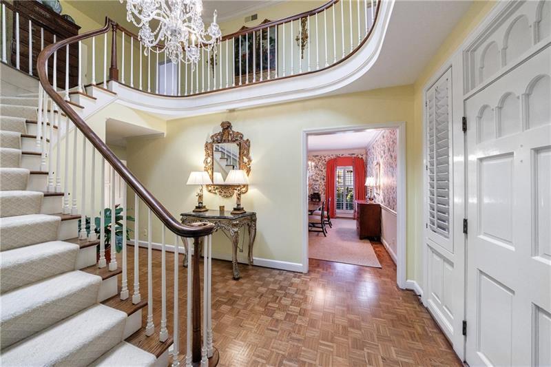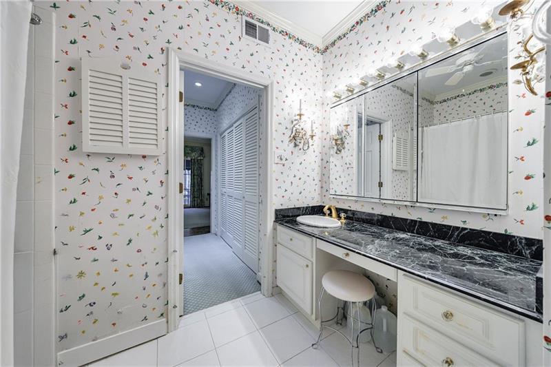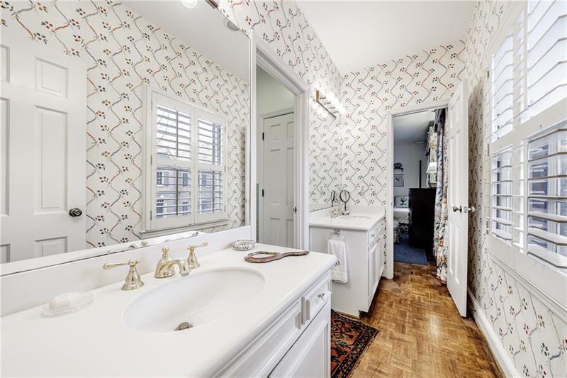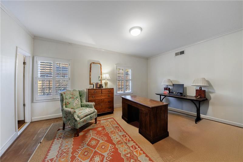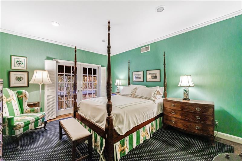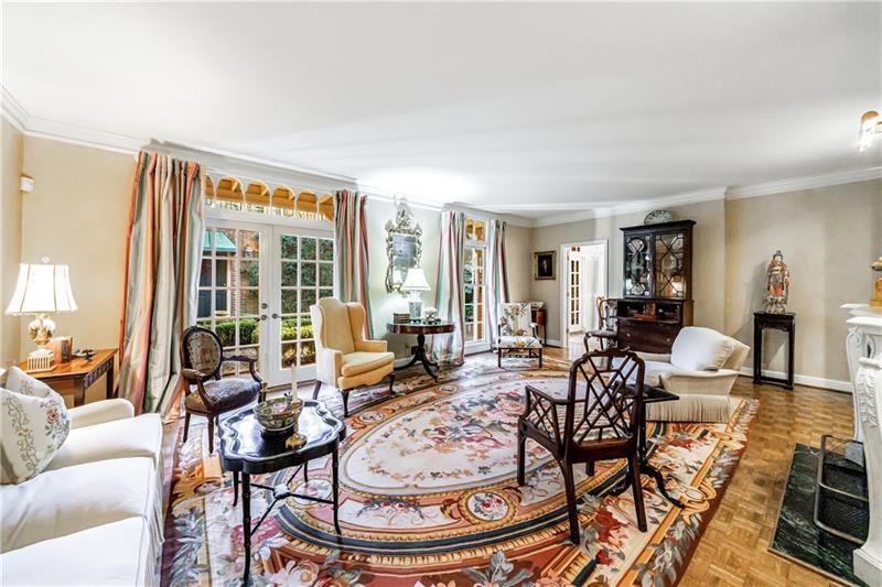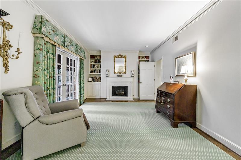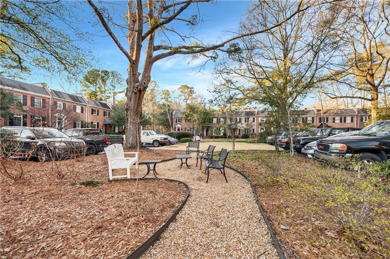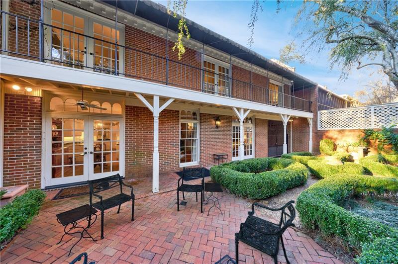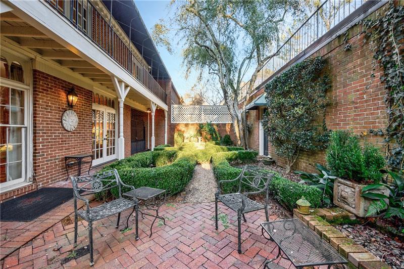 A one-of-a-kind, rarely available gem in the highly sought-after Paces Place community in the heart of Buckhead, offering over 4,000 sq ft of exquisite living space, the only unit of this size. This stunning property includes a detached au pair studio, a private English garden-inspired courtyard, and attached covered parking for two cars. As you enter through the grand two-story foyer with a curved staircase and intricate moldings, you're immediately captivated by the elegance and warmth of the home. The formal living room, ideal for hosting gatherings, and the oversized great room with a marble fireplace, detailed surround, and built-in lighted bookcases provide ample space for relaxation and entertainment. The bright, spacious kitchen features white cabinetry, stone countertops, a wet bar with glass shelving, and an open flow into the breakfast room, perfect for casual dining. French doors from the breakfast room and living room lead to the serene courtyard, enhancing the indoor-outdoor living experience. A distinguished study with rich wood-paneled walls, a cozy fireplace, and a convenient half bath complete the main level. Upstairs, the luxurious primary suite impresses with a sitting area featuring a fireplace, French doors to a private covered balcony overlooking the courtyard, extensive closet space, and a spa-like bath with a marble-topped dual vanity, soaking tub, and separate shower. Three additional generously sized bedrooms and two well-appointed bathrooms provide comfort and privacy for family and guests. The meticulously landscaped English garden offers a brick patio, manicured bushes, and a gated entry to the carport, creating a tranquil retreat. Beyond the courtyard, the rare detached au pair studio is a highlight, featuring a stone wall with a beautiful fireplace, a large studio space, a separate laundry room, a kitchenette, and a full bath-perfect for guests, an au pair, in-laws, a home office, or an art studio. Situated in the exclusive Paces Place, this property has a whole house generator and a brand new HVAC and is conveniently located just seconds from I-75, Buckhead's premier shops and restaurants, top-rated schools, Nancy Creek, and Atlanta's top attractions. The community itself offers a range of amenities, including a relaxing pool, a basketball sports court, walking trails, and ample guest parking, making it a perfect blend of luxury, privacy, and accessibility. Well established community with no rental restrictions makes this a perfect home for individuals, families and investors.
