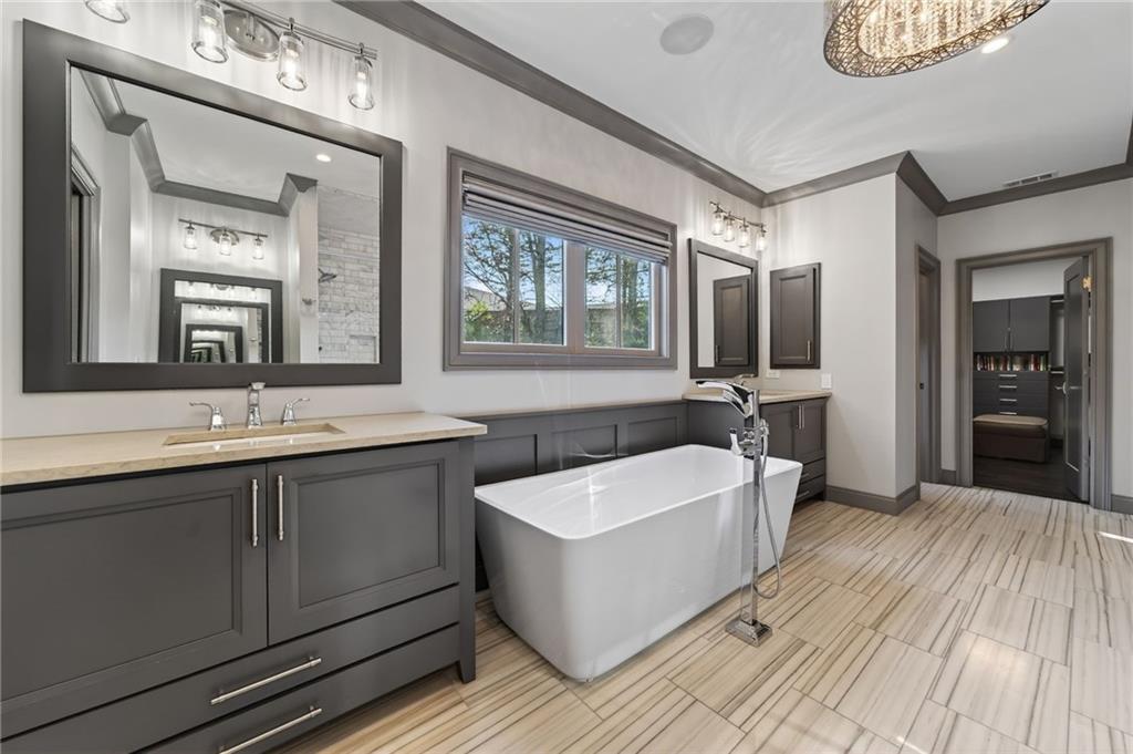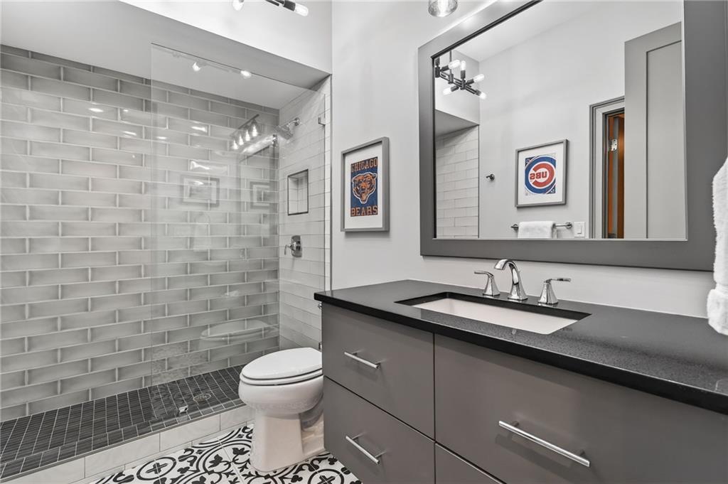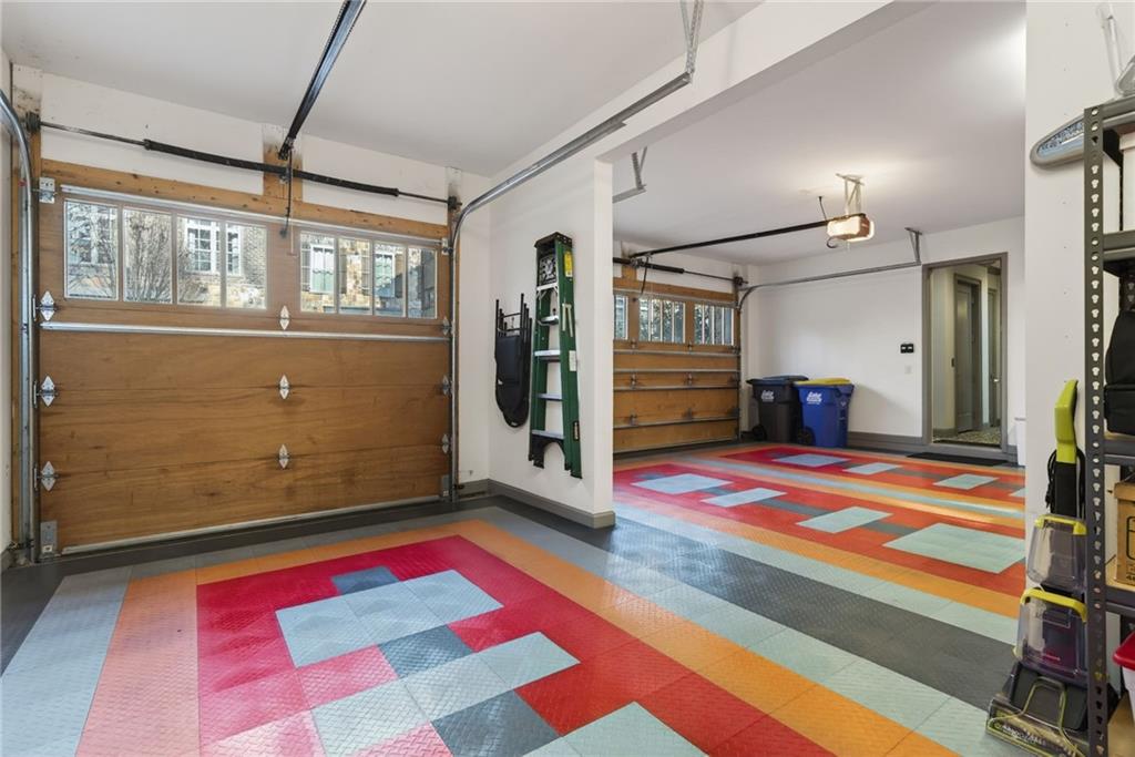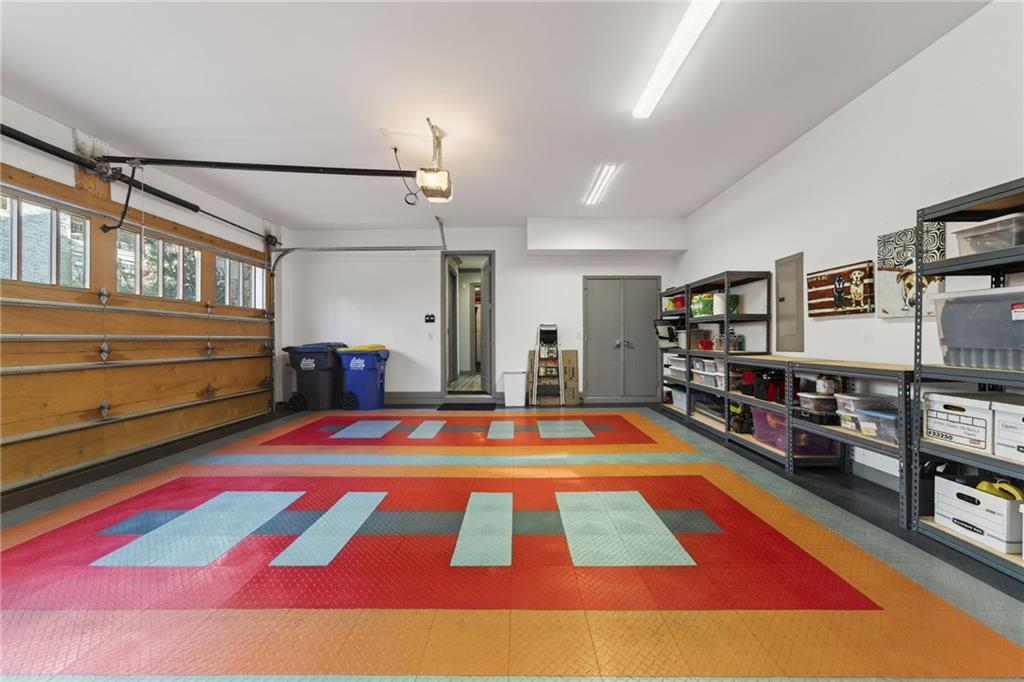 The terrace level features a spacious, fully permitted bedroom with an ensuite bath and walk-in closet, along with a dedicated media hub for smart home systems and additional storage. From here, step directly into the expansive three-car garage.
