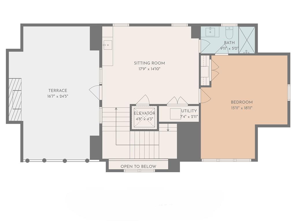 The top floor offers incredible flexibility as a private suite, ideal for guests, multigenerational living, an au pair, or an executive retreat. Currently configured as a media room and office, this level includes an additional bedroom with an ensuite bath, a mini-kitchen, and direct access to the stunning rooftop terrace.