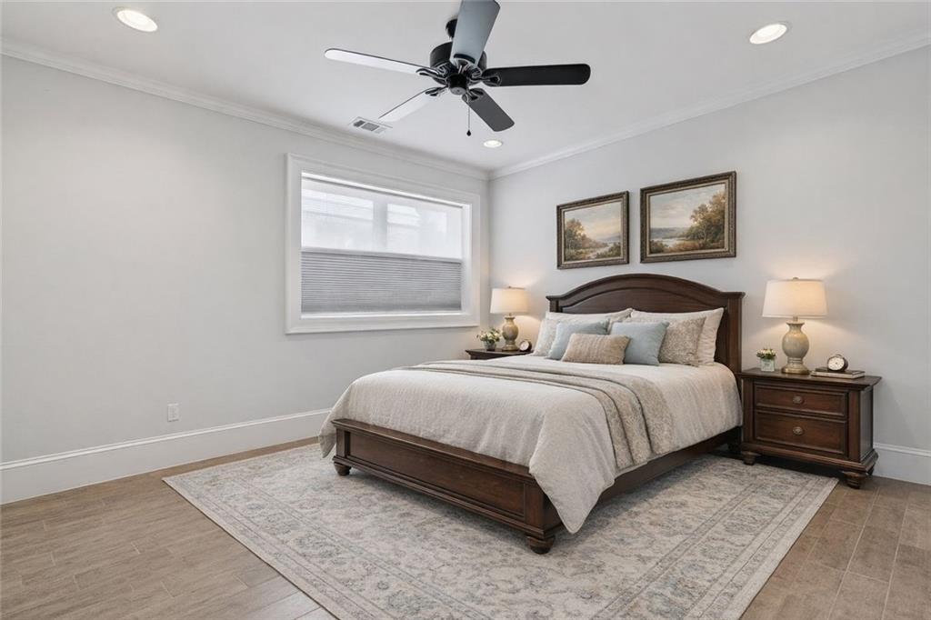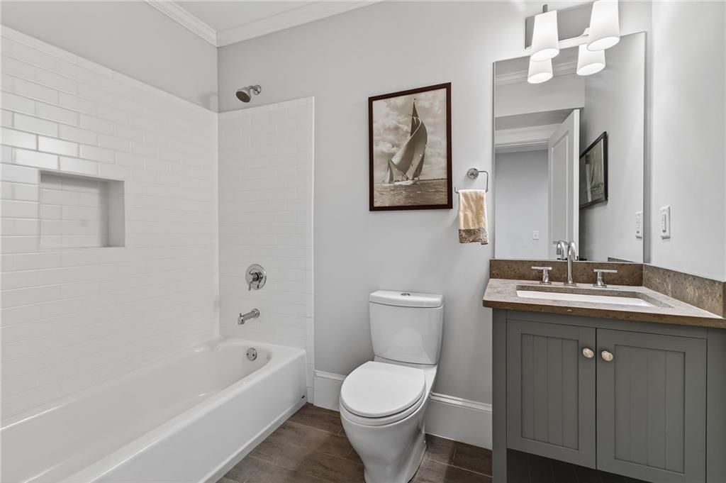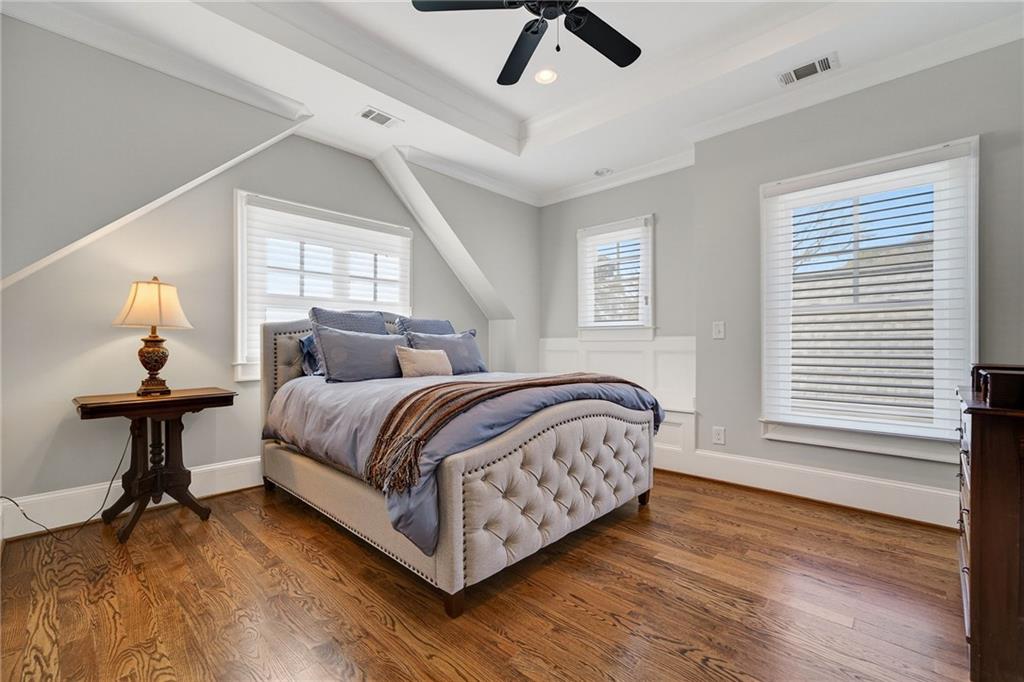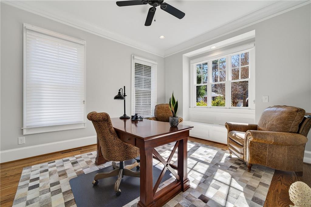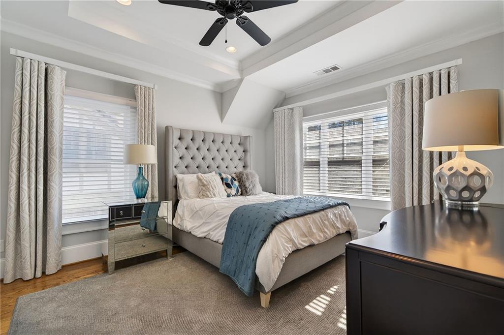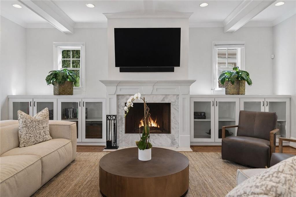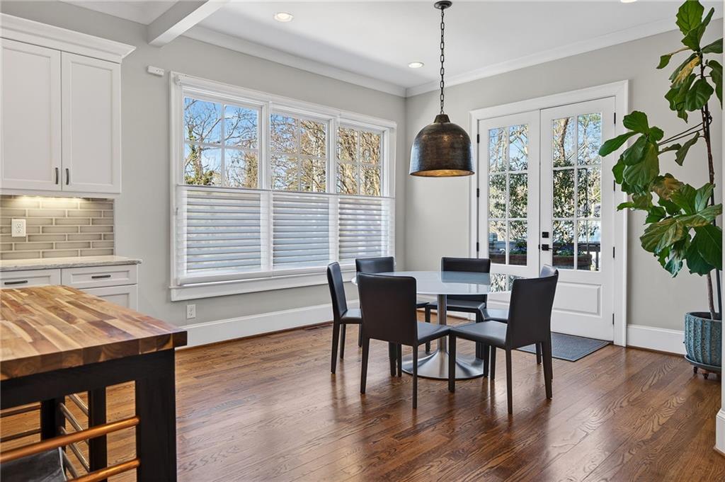 Set within one of Atlanta's most coveted enclaves, this exceptional 5-bedroom, 5.5-bath residence delivers a rare blend of classic architectural charm and elevated modern living. With uncompromising attention to detail, the home welcomes with a gracious covered front porch and continues with beautifully curated interiors featuring rich hardwood flooring, intricate crown molding, and designer finishes throughout. A dramatic foyer introduces the main level, flanked by an elegant dining room highlighted by coffered ceilings and French doors opening to the front porch, ideal for effortless indoor-outdoor entertaining. A private office with a full ensuite bath offers flexibility for work, guests, or an additional main-level suite. At the heart of the home, the chef's kitchen is both stunning and functional, showcasing an oversized island with seating, marble countertops, crisp white cabinetry, a walk-in pantry, and a sunlit breakfast room that flows seamlessly into the fireside family room with beamed ceilings. A cozy screened porch with its own fireplace creates a warm, inviting retreat in every season, while a butler's pantry and beautifully appointed powder room complete the main level with thoughtful sophistication. Upstairs, a loft with built-in shelving provides an ideal reading nook or study space. The primary suite is a true sanctuary, featuring soaring vaulted ceilings, a private covered balcony overlooking the backyard, dual walk-in closets, and a spa-caliber bath with dual vanities, a soaking tub, and a glass-enclosed shower. Three additional bedrooms offer generous accommodations, two connected by a Jack-and-Jill bath and one with a private ensuite, along with a well-equipped laundry room with cabinetry and sink for added convenience. The finished terrace level expands the home's versatility with a guest suite and full bath, a bonus room perfect for a fitness studio or playroom, discreet hidden storage, and direct access to the two-car garage. A connected workshop/office/flex space creates the perfect setting for creative pursuits, projects, or a quiet work-from-home environment. Outdoor living is equally compelling, with an expansive entertaining deck, a covered patio below, and a fully fenced backyard offering privacy and serenity. Ideally located just moments from Piedmont Park, the Atlanta Beltline, Virginia Highland, Midtown, and Ponce City Market, this remarkable Morningside home embodies refined luxury and effortless access to the very best of intown Atlanta.