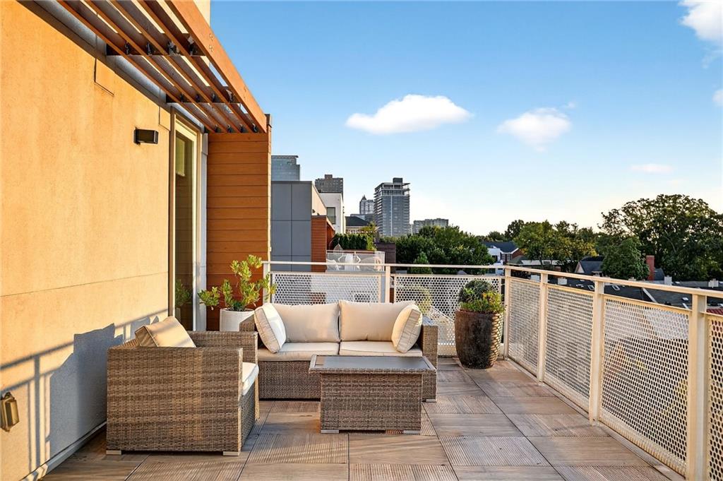 But the true piece de resistance is the penthouse's private outdoor terrace: a sprawling 1,000-square-foot balcony, perched high above the city and designed for unforgettable evenings under the stars. With dedicated spaces for alfresco dining, lounging, and unwinding, it's your very own rooftop oasis, framed by skyline views and kissed by the breeze.