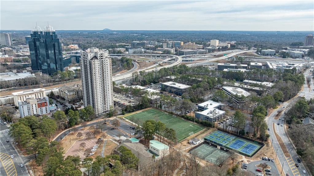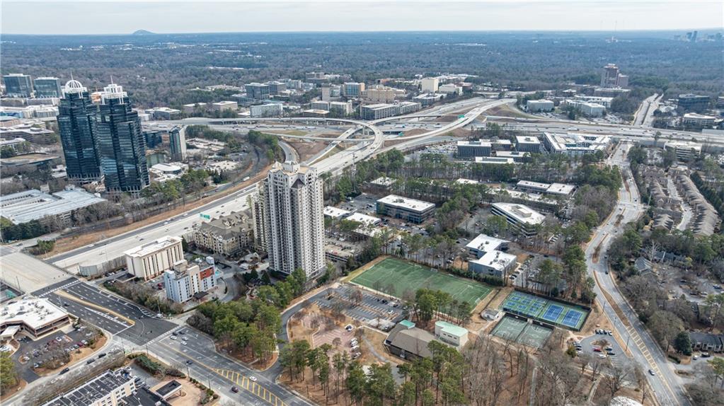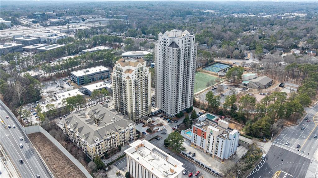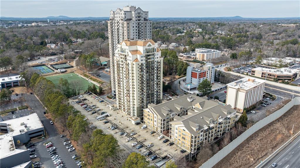 Experience stylish high-rise living in this beautifully designed two-story condo in Park Towers, ideally located in the heart of Sandy Springs near Perimeter Mall, GA-400, I-285, MARTA, Hammond Park, and countless dining and shopping options. With 2 bedrooms and 2.5 bathrooms, this open and airy floor plan offers both functionality and impressive views of the Central Perimeter skyline, including the iconic King and Queen buildings.