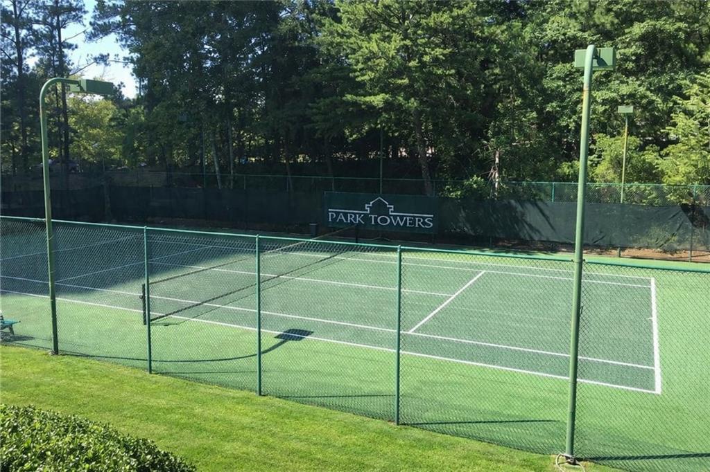 Residents of Park Towers enjoy an impressive list of amenities including 24-hour concierge service, resort-style pool, fitness center, tennis courts, grilling areas, dog run, wine cellar, club room, business center, and on-site conveniences like a market and dry cleaner. The unit also includes two assigned covered parking spaces.
