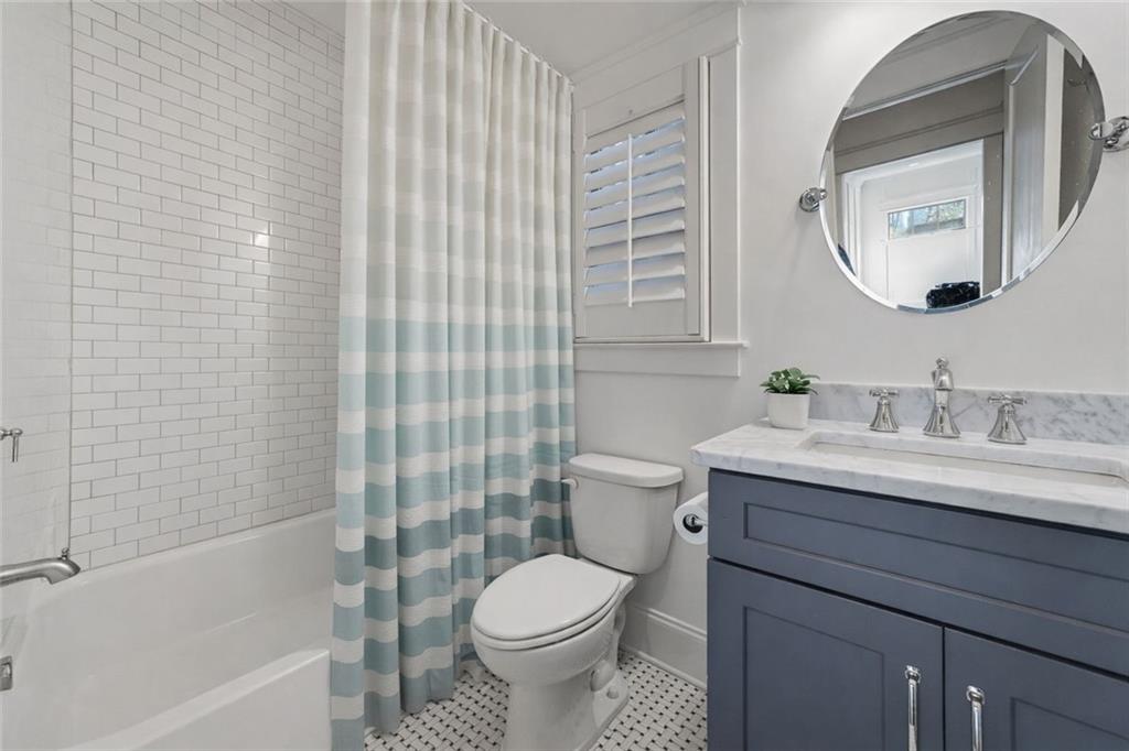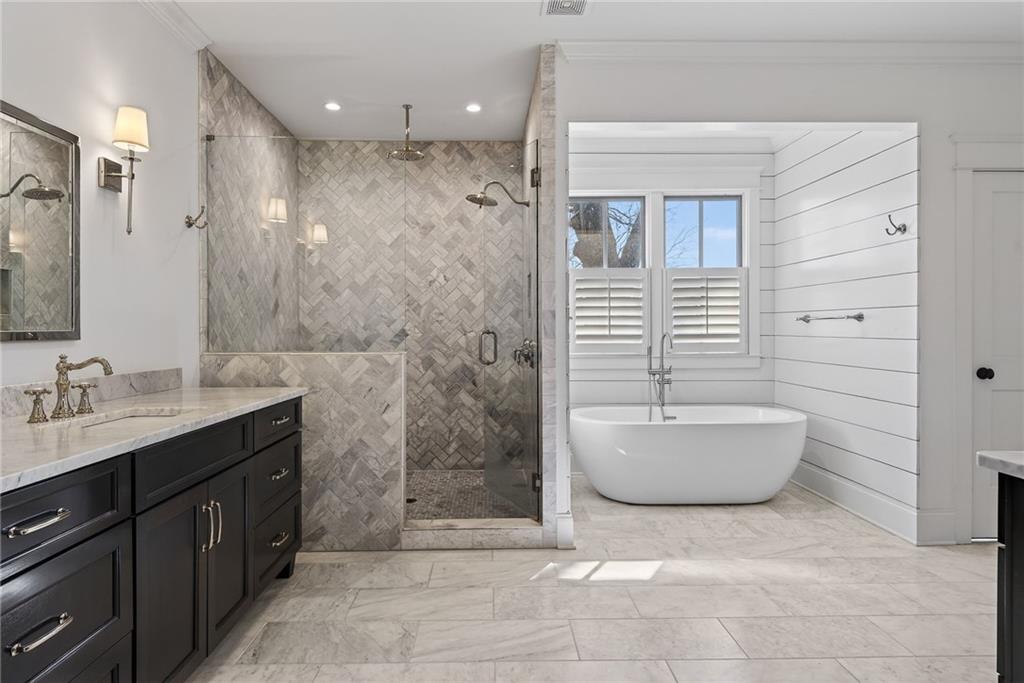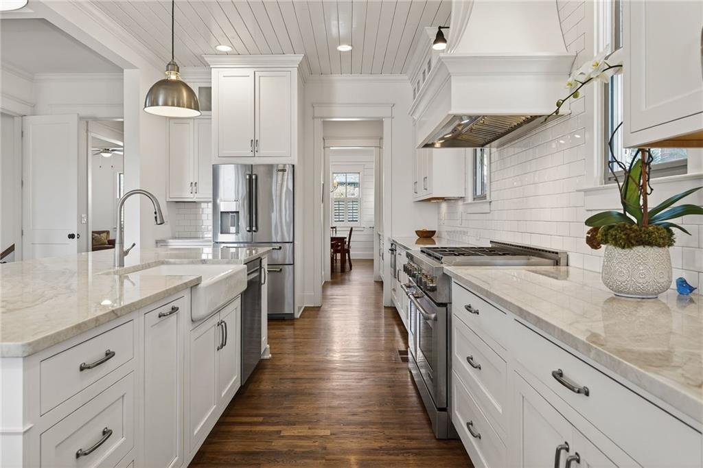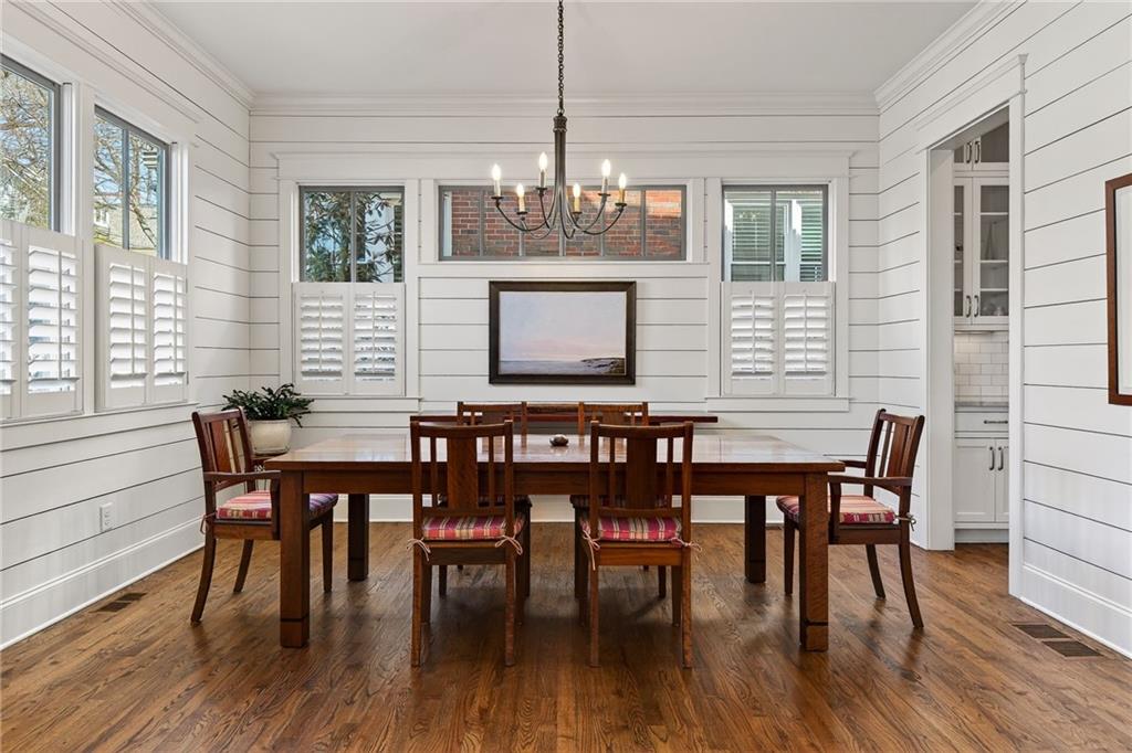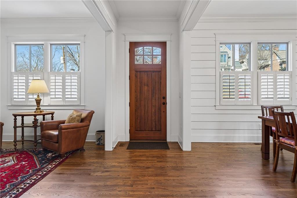 This exceptional Virginia Highland home blends timeless craftsmanship with thoughtful design and incredible space for modern living. A welcoming entry foyer is flanked by a formal living room and dining room, creating an elegant first impression. The fireside living room features a classic brick fireplace framed by custom-built-in bookshelves and stunning beamed ceilings, offering warmth and character throughout. The beautifully designed kitchen is a true centerpiece, complete with quartzite countertops, a dramatic vent hood over the gas cooktop, cabinetry extending to the ceiling, and a large quartzite-topped center island with seating. A bright breakfast room sits just off the kitchen, while a spacious walk-in pantry provides abundant storage. The butler's pantry seamlessly connects the dining room and kitchen, continuing the quartzite countertops and featuring a sink, additional cabinetry, and a beverage refrigerator, perfect for entertaining. Plantation shutters and hardwood floors extend across all levels, adding style and cohesion throughout the home. Upstairs, the primary suite serves as a luxurious retreat with detailed and beamed ceilings and a stellar view of the Atlanta skyline. The oversized walk-in closet includes custom built-in shelving, and the spa-like primary bath features two marble-topped vanities and refined finishes. All secondary bedrooms are generously sized and offer ample closet space, providing comfort and functionality for family or guests. The secondary bathrooms are equally well-appointed, showcasing high-quality finishes and timeless design that mirrors the elevated standards found throughout the home. The finished terrace level offers exceptional flexibility, with a full bedroom and bathroom, additional living space, and a wet bar complete with sink and beverage fridge, ideal for an in-law suite, au pair quarters, or a private guest retreat. A fantastic mudroom entry enhances everyday functionality, and storage is plentiful throughout the home. Outdoor living is equally impressive. The screened porch with its stylish wood ceiling and stone fireplace creates a cozy year-round gathering space. Just beyond, an open sundeck is perfect for grilling and sunbathing and includes an exterior staircase for easy backyard access. Home offers sealed gutters as well. The terrace-level patio features a brick fireplace and overlooks a large, level, fenced backyard, perfect for pets and play. An awesome two-car garage and an extended driveway provide ample parking. Zoned for highly sought-after Virginia-Highland Elementary and situated in one of Atlanta's most beloved neighborhoods, this home offers an unbeatable in-town lifestyle. Enjoy close proximity to Piedmont Park, the shops and restaurants of Virginia Highland and Morningside, and easy access to Atlanta's premier attractions, schools, and green spaces, all while living on a quiet, charming street in the heart of the city.