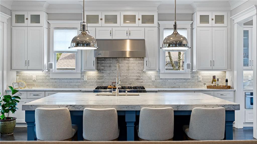 Designed with both function and sophistication in mind, the floor plan features a dedicated home office ideal for remote work or quiet study, along with a beautiful formal dining room ready for holiday gatherings, dinner parties, and memorable celebrations. The heart of the home is the stunning designer kitchen, appointed with a professional-grade stainless steel appliance package, gleaming marble countertops, and crisp raised white cabinetry, a true statement space that balances style with everyday practicality.