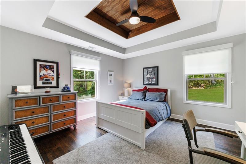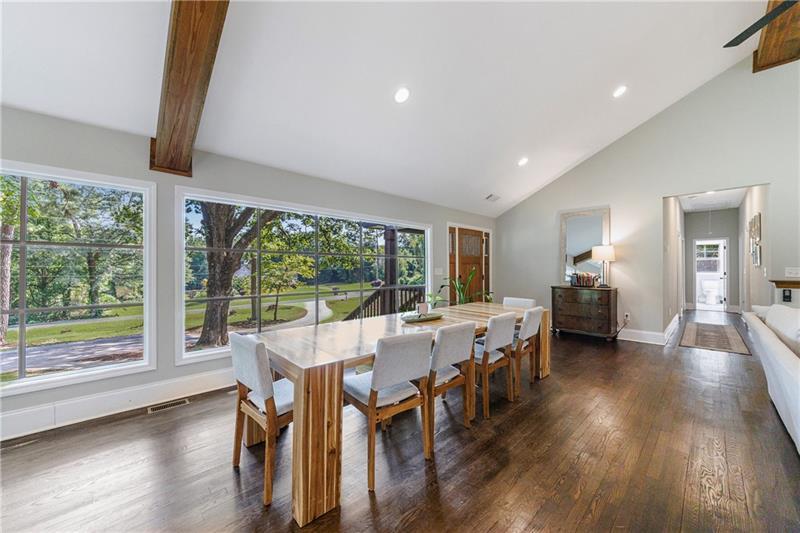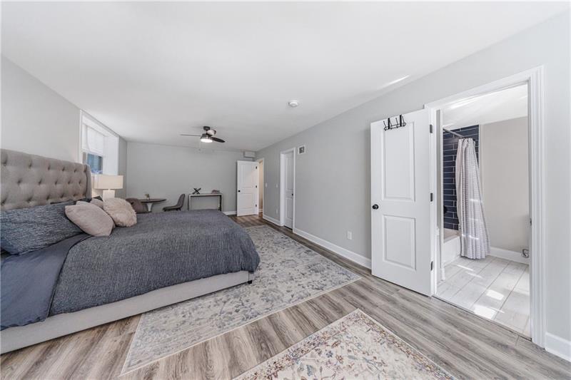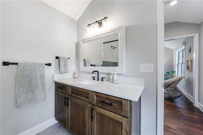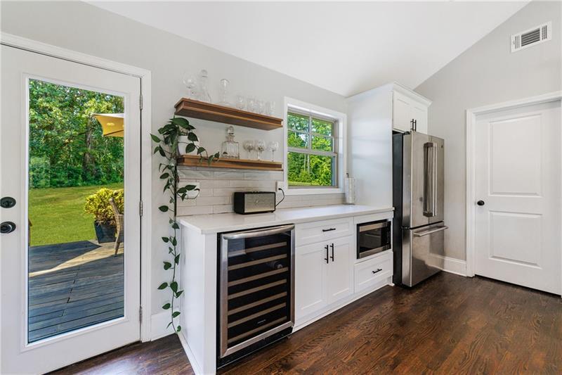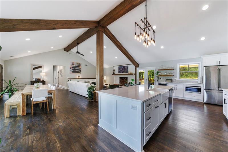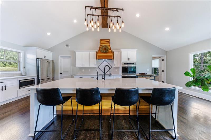 Welcome to this stunning, fully renovated oasis situated on 2.4 acres, just 3 miles from Serenbe and moments from Cochran Mill Park, home to over 20 miles of nature trails and multiple waterfalls along Little and Big Bear Creeks. This beautifully appointed brick home boasts an open-concept floor plan, finished terrace level, and modern finishes throughout. Upon entry, you're greeted by a spacious living area featuring vaulted ceilings with natural wood beams, hardwood floors, and oversized windows that frame stunning views of the surrounding greenery. The fireside living room, with its oversized brick fireplace, flows seamlessly into the dining room and kitchen. The remarkable kitchen features a stone-topped island with a breakfast bar and farm sink, white cabinetry, and stainless steel appliances, including a double oven, wine chiller, microwave, dishwasher, and refrigerator. The cooktop is enhanced by a natural wood vent hood, complementing the ceiling beams, open shelving, and wood fireplace mantel. The large primary suite offers a vaulted ceiling with wood accents and a spa-inspired bathroom, complete with a stone-topped dual vanity, oversized shower, and slipper tub. Three additional bedrooms, finished with equally stylish details, share two renovated bathrooms on the main level. The fully finished terrace level includes a second living area with a brick fireplace, an open flex space ideal for a game room, home office, or playroom, and a guest or in-law suite with an oversized bedroom, sitting area, and modern full bath. Outside, a large, peaceful deck overlooks the private, expansive yard with level grassy areas-perfect for entertaining, hosting events, or enjoying outdoor activities with family and friends as well as a chicken coop. This property offers ultimate privacy and a tranquil escape, with all the modern comforts just minutes from the vibrant community of Serenbe and less than 20 minutes from the airport. Property is unfurnished and lawn care is included!