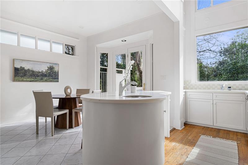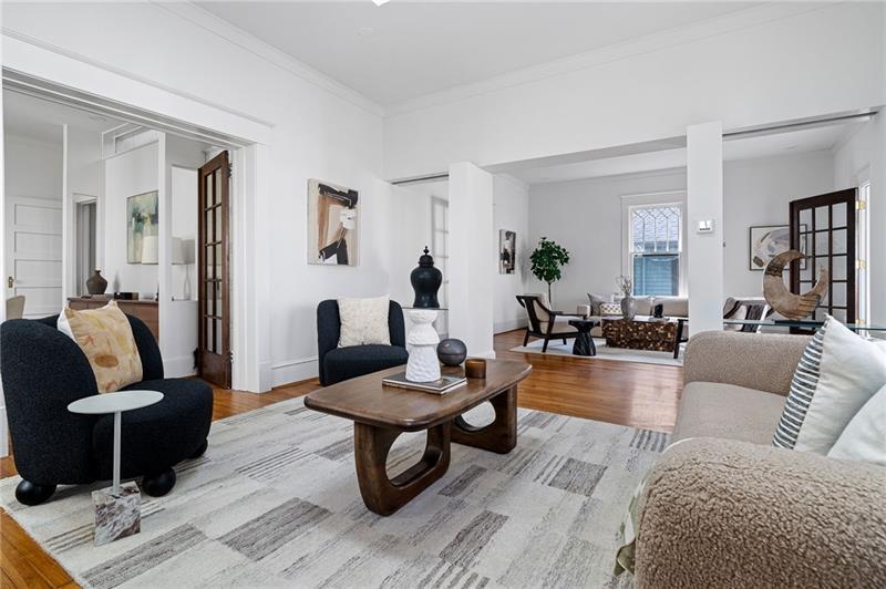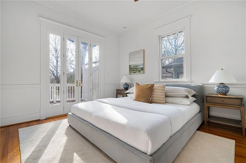 Stunning Virginia Highland bungalow, offered for the first time in over 30 years, this perfectly located gem sits high above the street with beautiful views and timeless curb appeal. A charming, nostalgic staircase leads from the sidewalk to a large, covered front porch, creating a warm, inviting first impression. Inside, you're welcomed by a spacious foyer featuring floor-to-ceiling windows, a sliding glass door, and French doors that open into the main living spaces. Hardwood floors, detailed trim and moldings, high ceilings, and classic architectural character span the main level. The formal living room flows seamlessly into the cozy family room, featuring a fireplace, period-style window frames, a skylight, and decorative accent walls, perfect for relaxing or entertaining. A second set of French doors opens into the formal dining room, an excellent space for gatherings large or small. The dining room features an attached buffet, decorative windows, and direct access to the kitchen. The bright, sunny kitchen is truly the hub of the home, offering a large breakfast area, a vaulted ceiling with abundant windows, an island with a breakfast bar and a vegetable sink, recessed lighting, and a glass door that opens to the expansive back deck and yard. Enjoy cooking with a gas cooktop and stainless steel wall oven, plus a sink perfectly positioned beneath a large window overlooking the lush, level backyard. The spacious primary suite on the main level includes French doors to the back deck for private access, along with a spa-inspired bath featuring a floating, marble-topped wood vanity. A large secondary bedroom and full bathroom on the main level provide ideal space for guests or family. Upstairs offers another generously sized bedroom and a large bonus area that serves as a perfect canvas for a home office, playroom, home gym, teen suite, art studio, or additional living space. This flexible area includes a sink, built-in desk space, bookshelves, drawers, and abundant natural light. Venture outside to the huge back deck, ideal for outdoor entertaining and everyday living, overlooking the fenced, grassy backyard, perfect for kids and pets. Absolutely gorgeous architecture and details throughout, all in an incredible location. Situated in the highly sought-after Virginia-Highland Elementary School district, and just seconds to the shops and restaurants of Virginia-Highland. Minutes to Morningside, Midtown, Emory, the CDC, Ponce City Market, Piedmont Park, festivals, and all the best of Atlanta.
